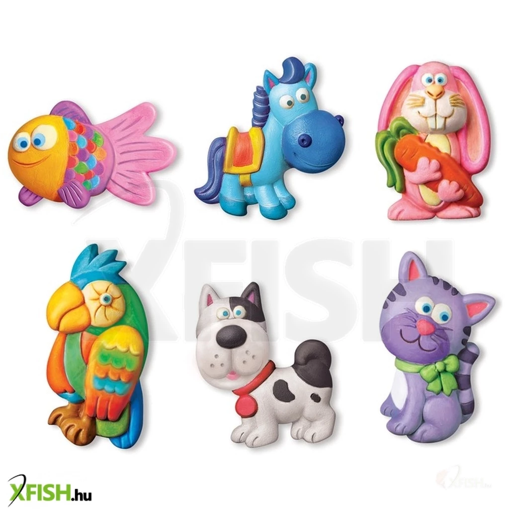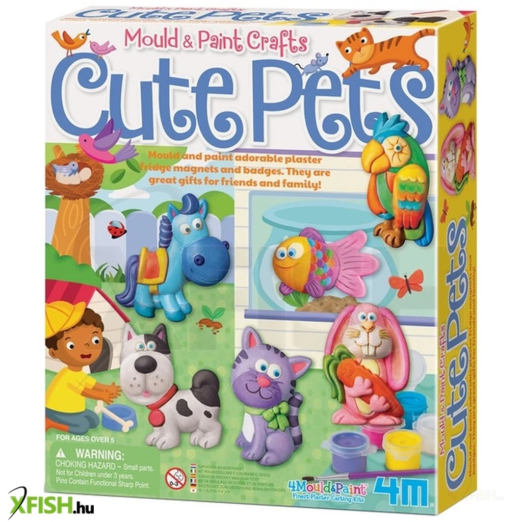 Ültess háziállatokat a hűtőszekrény ajtajára, gipsszel és festékkel! A 4m aranyos állatok gipszkiöntő készlet öntőformájába a vízzel elkevert gipszet kell beöntened, és ha megkötött, már csak ki kell festened a cicákat, kutyákat vagy halakat. Az állatos gipszminták hátára ragassz mágneses csíkot, és már mehetnek is fel a hűtőmágnesek a fémfelületekre. A hűtőmágnesekkel akár üzeneteket is tudtok hagyni egymásnak, vagy a bevásárlólistát is ki tudod tenni. A 4m aranyos állatok gipszkiöntő készlettel hat különböző mágnest tudsz elkészíteni, ha elfogy a gipsz, egyszerű modellgipsszel tudod utántölteni.