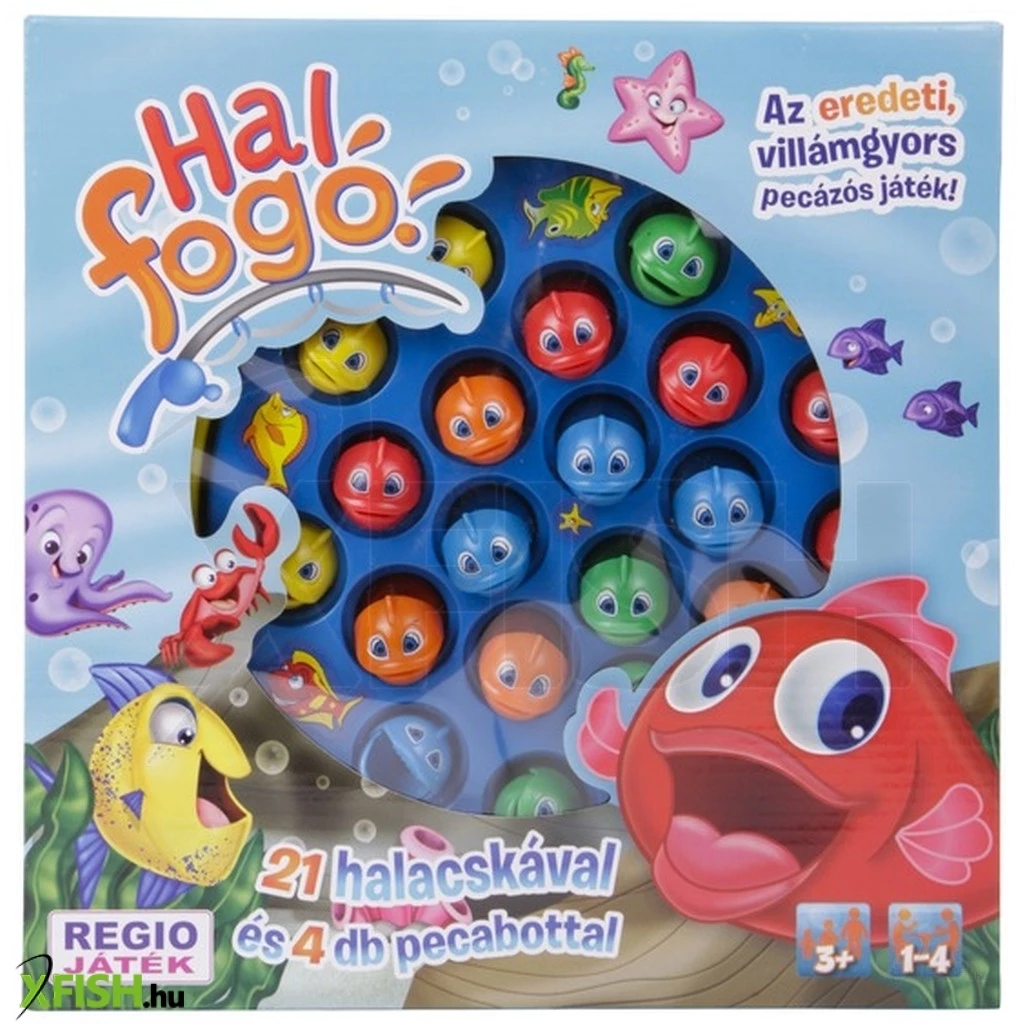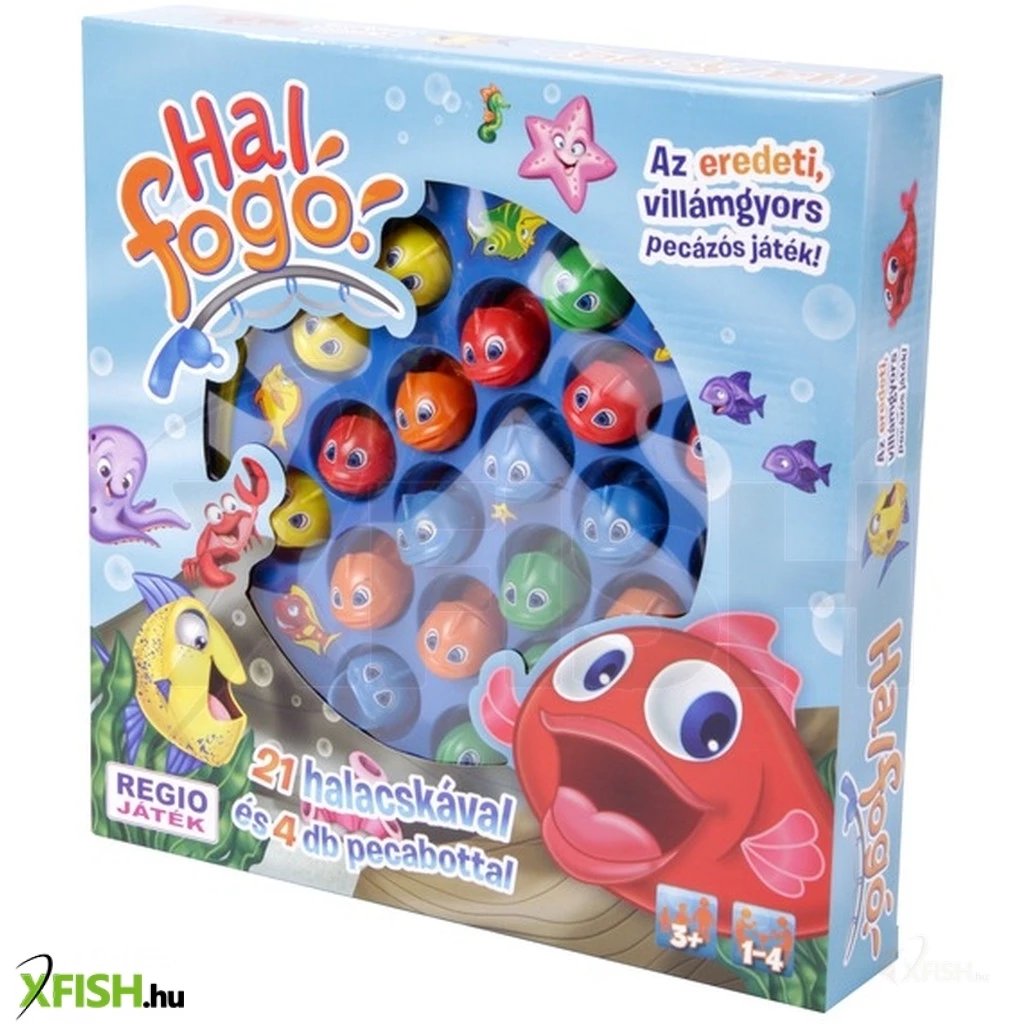 Horgássz ki minél több halat a Halfogó társasjáték tavából, és szerezd meg az aranyserleget! Egyszerre 4 versenyző tud a győzteseknek járó kupáért harcolni, így viszonylag gyorsan kiderül, hogy kinek akadt több hal a csalijára. És hogy minél élénkebben tátogassák a szájukat a halacskák