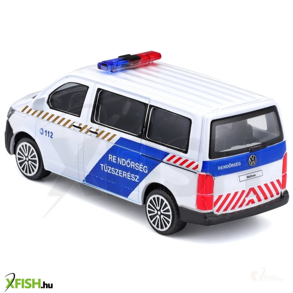 Az 1:43 méretarányú VW T6 rendőrségi tűzszerész autó fémből és műanyagból készült autómodell gyerekeknek és gyűjtőknek egyaránt. Az autó Rendőrség felirattal és a 112 hívószámmal van díszítve, és pont úgy néz ki, mint az igazi tűzszerész autók.
