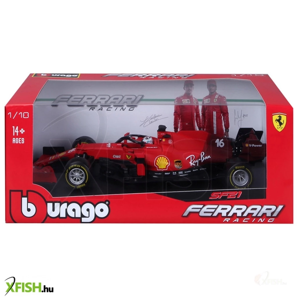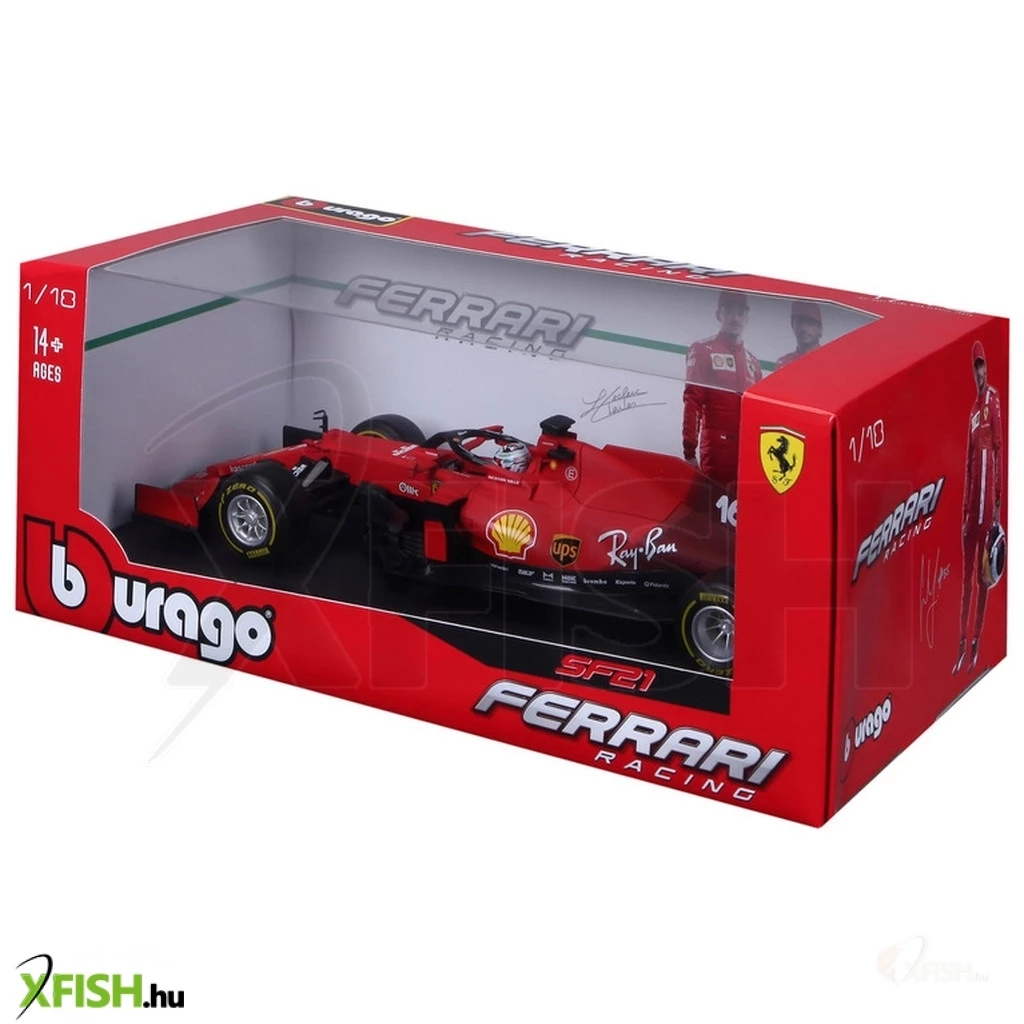 Forma 1-es autó, Ferrari sf21, amely a tökéletes 1:18 méretarányú másolata Charles Leclerc 2021-es versenyautójának. Matt vörös színű, fém, egyes elemei műanyagok a gumiabroncsok pedig gumiból készültek. Lecrerc 16-os rajtszáma megtalálható a versenyautón, valamint a pilóta bukósisakja is a valódi pontos mása.
