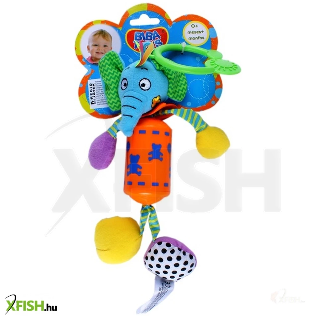 Színes lógó kisállat, csörgő pocakkal! Az Állatos csörgő bébijáték egy textilből és műanyagból készült vidám elefánt, ami mozgásra ingerli a babát. A játék rázás hatására kellemes csörgő-zörgő hangot ad ki magából, csak akaszd fel a babaágyra, babakocsira, bárhova, ahol a baba eléri. Az Állatos csörgő bébijáték élénk színű, változatos tapintású textilekből készült. Méret: 36 cm.