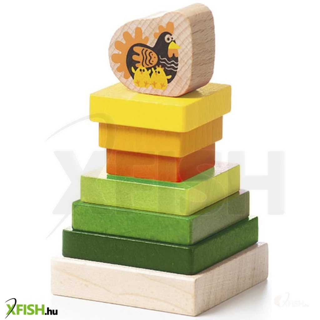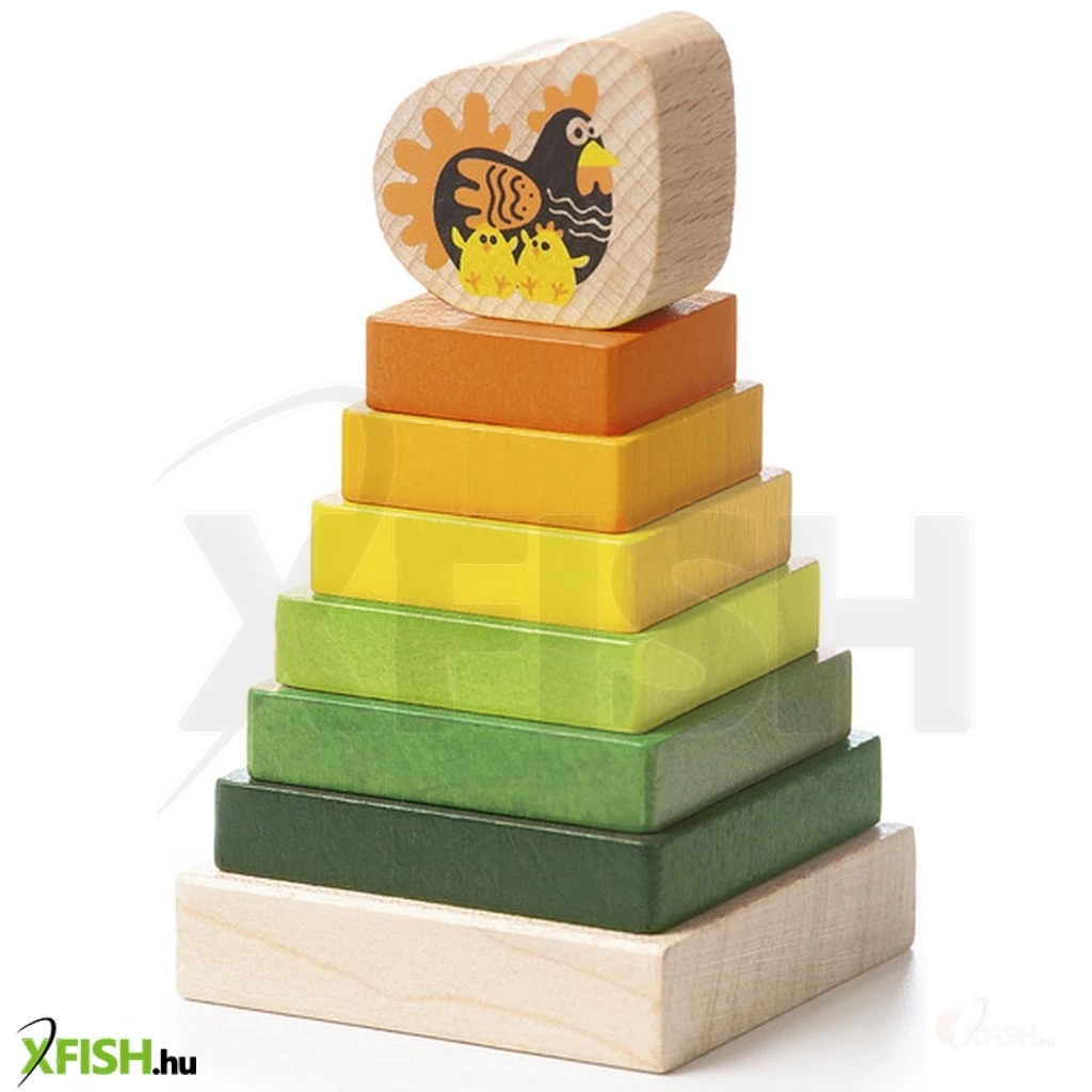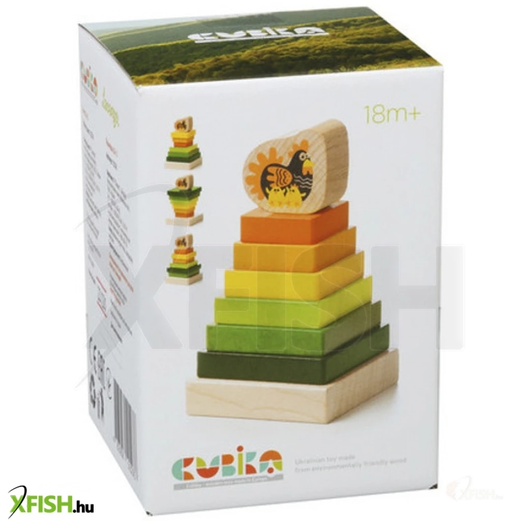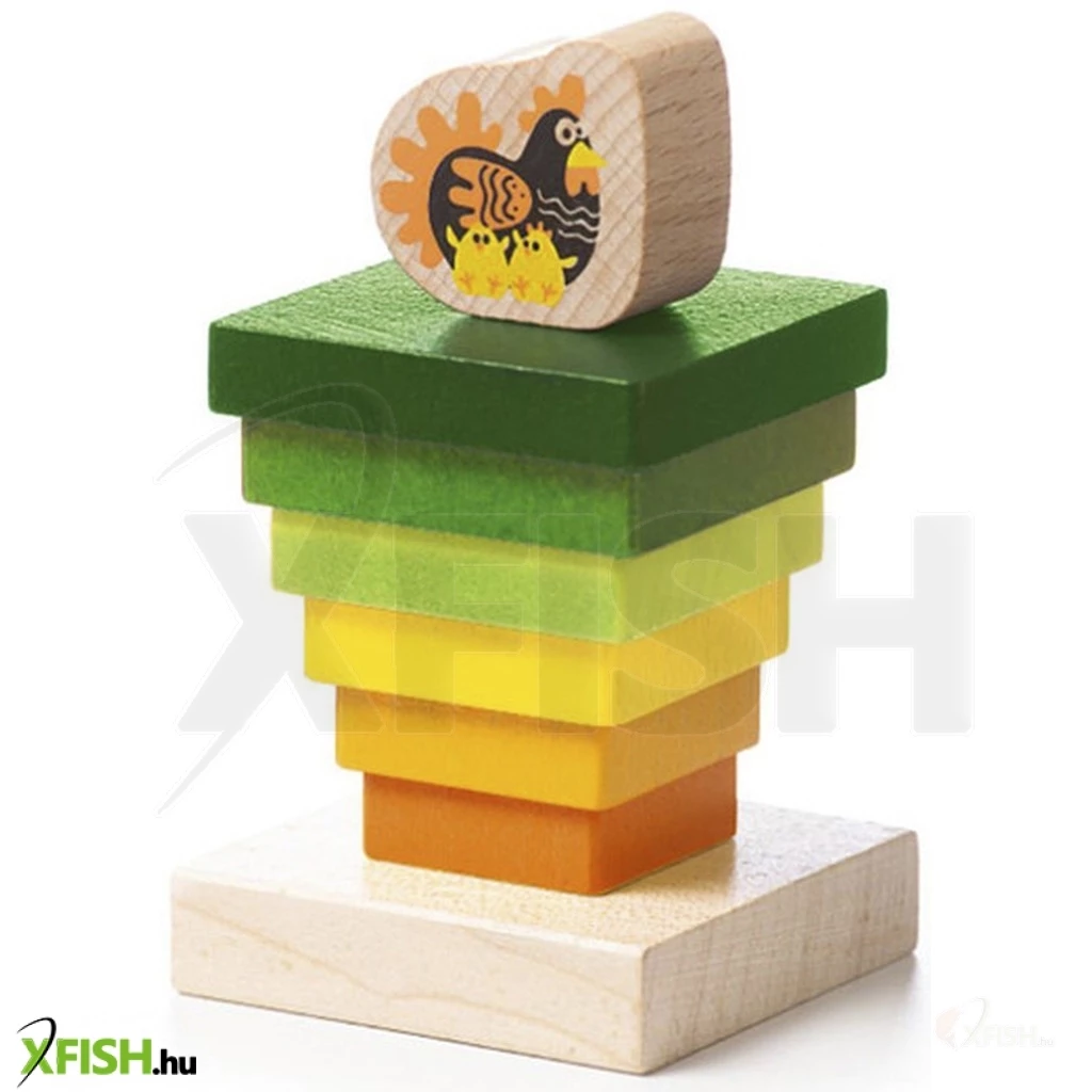 Szerezzen be a gyerekeknek egy színes, fából készült piramist egy Cubika tyúkkal, aminek köszönhetően 6 különböző méretű tömb talapzatára történő felhelyezését gyakorolják, így a klasszikus egyiptomi piramis megjelenését érik el. A tetején pedig természetesen egy tyúk lesz a két csirkével.
