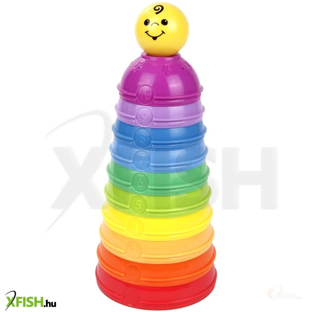 Rakosgasd egymásra a szivárvány színű csészéket! A Fisher-Price 10 darabos színes csészepiramis műanyag félgömbökből áll, amiket golyókká lehet összeforgatni, de akár egymásra is tudod őket tornyozni. A csészékből egy piramist lehet összeállítani, a tetejére egy vigyorgó arcot is fel lehet rakni. A Fisher-Price 10 darabos színes csészepiramis fejleszti a baba kézügyességét, és közben a színeket, számokat is meg tudja tanulni. A Fisher-Price 10 darabos színes csészepiramis csomagolási méretei: 18 x 13 x 21 cm.