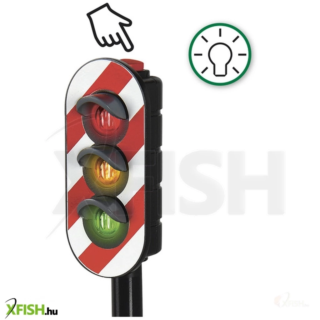 A lámpa tetején található egy piros gomb, amelyet megnyomva aktiválja a fényjelzést – a piros azt jelenti, hogy állj meg, a sárga azt jelenti, hogy várj, a zöld pedig készen áll az új kalandokra!