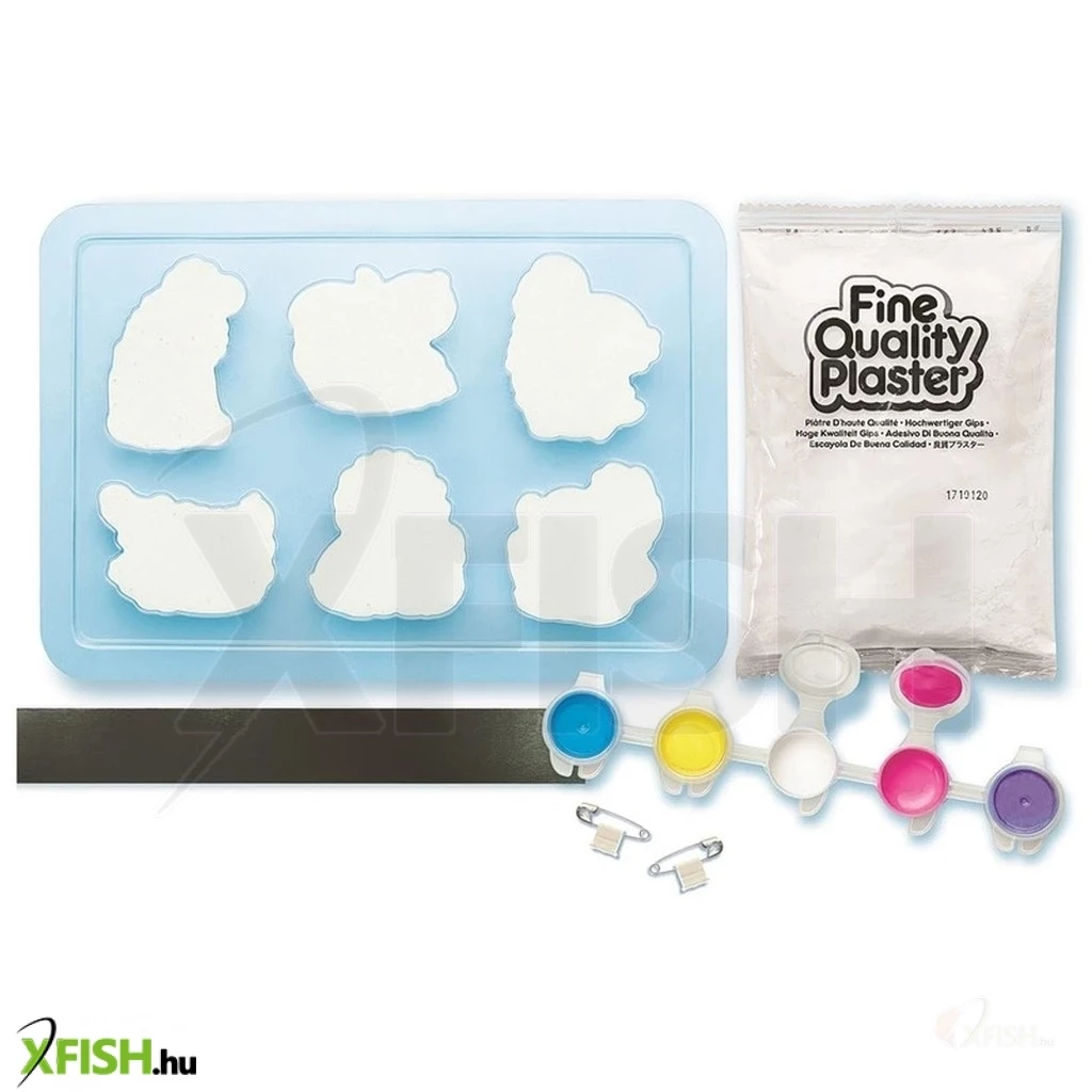 Alkosd meg saját állatkertedet! A Mould & Paint Crafts készlettel egyből belevetheted magad, a gipszöntés tudományába! Nem kell hozzá más, mint gipszpor, víz és a kedvenc állataidat ábrázoló műanyagforma. A megdermedt gipszállatkákat pedig, kedved szerint kifestheted és dekorálhatod! Valódi kreatív délután csaphatsz barátaiddal, ennek a gipszkészítő készletnek köszönhetően. Alkoss, fess és lepd meg környezetedet a legvadabb színkombinációkkal! A gipszkészítésben, a képzeleted sem szabhat határt! A műanyagformák segítségével sokféle állatot elkészíthetsz, megtalálod oroszlánt, zsiráfot, flamingót, tigrist, krokodilt és elefántot. Saját állatkerted lehet, ahol a számodra legkedvesebb élőlények foglalhatnak helyet. A gipszfigurákból mágnest és kitűzőt is alkothatsz, ezáltal a hűtőn és a ruhádon is összetalálkozhatsz saját műremekeiddel. A készlet tartalmaz 1 csomag gipszport, egy műanyagformát, színes festékeket, egy ecsetet, 2 db biztosítótűt és egy mágnes csíkot.