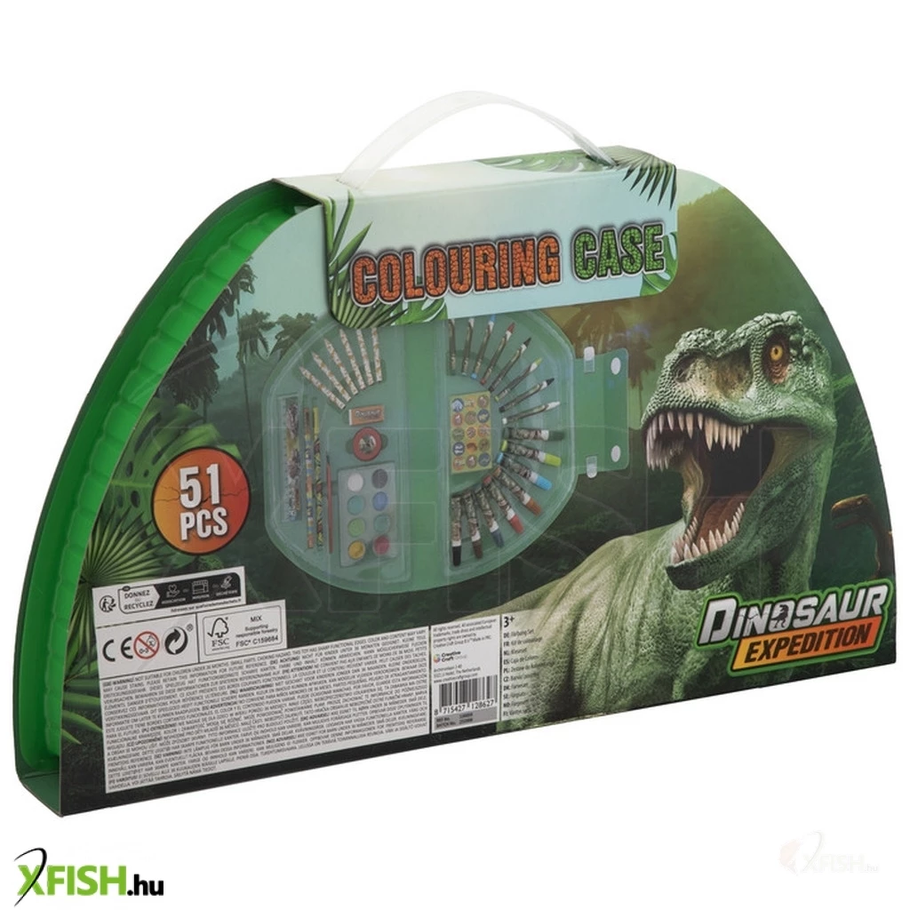 Fedezd fel a kreativitás világát a dínós rajzszettel! Ez az 51 darabos készlet tökéletes választás minden dinoszauruszrajongó kisgyermek számára, aki szeretne elmerülni a színek és a formák világában. A szett különböző színes ceruzákat, zsírkrétákat, filctollakat és sablonokat tartalmaz, amelyekkel a gyerekek könnyedén megrajzolhatják kedvenc őslényeiket. A tartós és biztonságos anyagokból készült rajzszett ideális ajándék, ami órákig tartó szórakozást és alkotást nyújt.