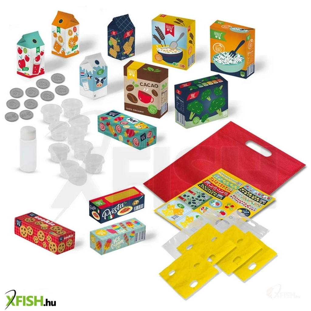 A csomagban találsz játék élelmiszereket, amelyeket a játékpénzekkel ki is tudsz fizetni, amint végeztél a vásárlással. De van benne egy játék akciós újság is, amiből írhatsz listát is, mielőtt