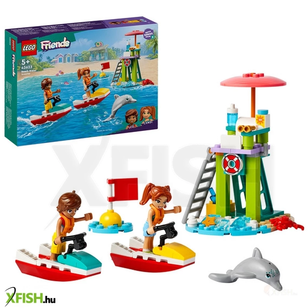 Engedd, hogy a gyerekek vidám óceáni kalandokban vegyenek részt ezzel a Lego(R) Friends Vízi robogó a strandon (42623) vízimentős, 5+ éves gyerekeknek készült játékkal. A szett 2 minibabafigurát, egy delfinfigurát és kiegészítőket rejt, hogy inspirálja a fantáziadús játékot. Ehhez az úszómesteres Lego szetthez 2 vízi robogó kiegészítő tartozik, hogy a gyerekek eljátszhassák a történetet. Leo ma úszómesteri ügyeletet tart, és a távcső segítségével figyeli az óceánt. Ez tökéletes hely arra is, hogy delfineket láss. Később csatlakozik Candihez és a többi barátjához, hogy versenyezzenek a vízi robogókon. Vigyázz a pimasz kis rákkal, aki meg akarja támadni a hűtőt, hogy jégkrémet szerezhessen! Fedezz fel még több, gyerekeknek szóló ajándékötletet a Lego Friends szettek világában (külön kaphatók), amelyek rengeteg lehetőséget kínálnak a történetmesélésre, miközben a gyerekek eljátsszák a való élet kalandjait. A szetthez tartozik a Lego Builder app is az egyszerű és intuitív építési kaland érdekében. Itt a gyerekek felnagyíthatják és 3D-ben elforgathatják a modelleket, szetteket menthetnek el, és nyomon követhetik a haladásukat.