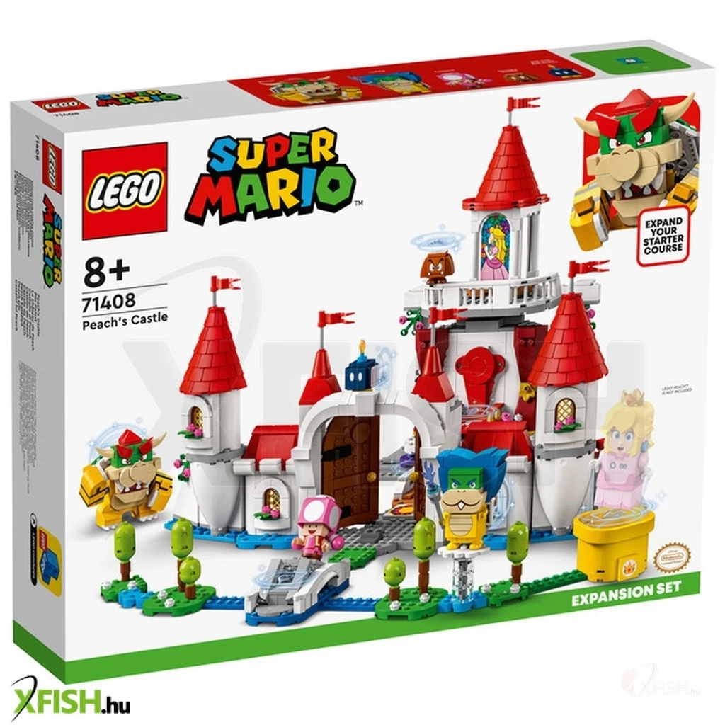 A Peach kastélya kiegészítő szettel (71408) a gyerekek egy ikonikus helyszínnel egészíthetik ki Lego(R) Super Mario™ univerzumukat. A játékosokra rengeteg felfedeznivaló vár, emellett interaktív Lego(R) Mario™, Lego(R) Luigi™ vagy Lego(R) Peach™ figurájukkal (a szett nem tartalmazza) számos módon nyerhetnek digitális érméket. A készlet egy tróntermet tartalmaz forgatható fallal, ami Bowsert rejti, emellett egy Peach-et ábrázoló ablaküveget, egy interaktív elemmel ellátott Bob-omb festményt, egy Goombát rejtő tortát, egy Peach kastélya különleges csövet, Időkockát, „leszakadt” hidat, egy lila gyümölcsöt tartalmazó gyümölcstálat és sok minden mást is találsz. (Megjegyzés: a 71360, 71387 vagy 71403 kezdőpálya szükséges az interaktív játékhoz.)