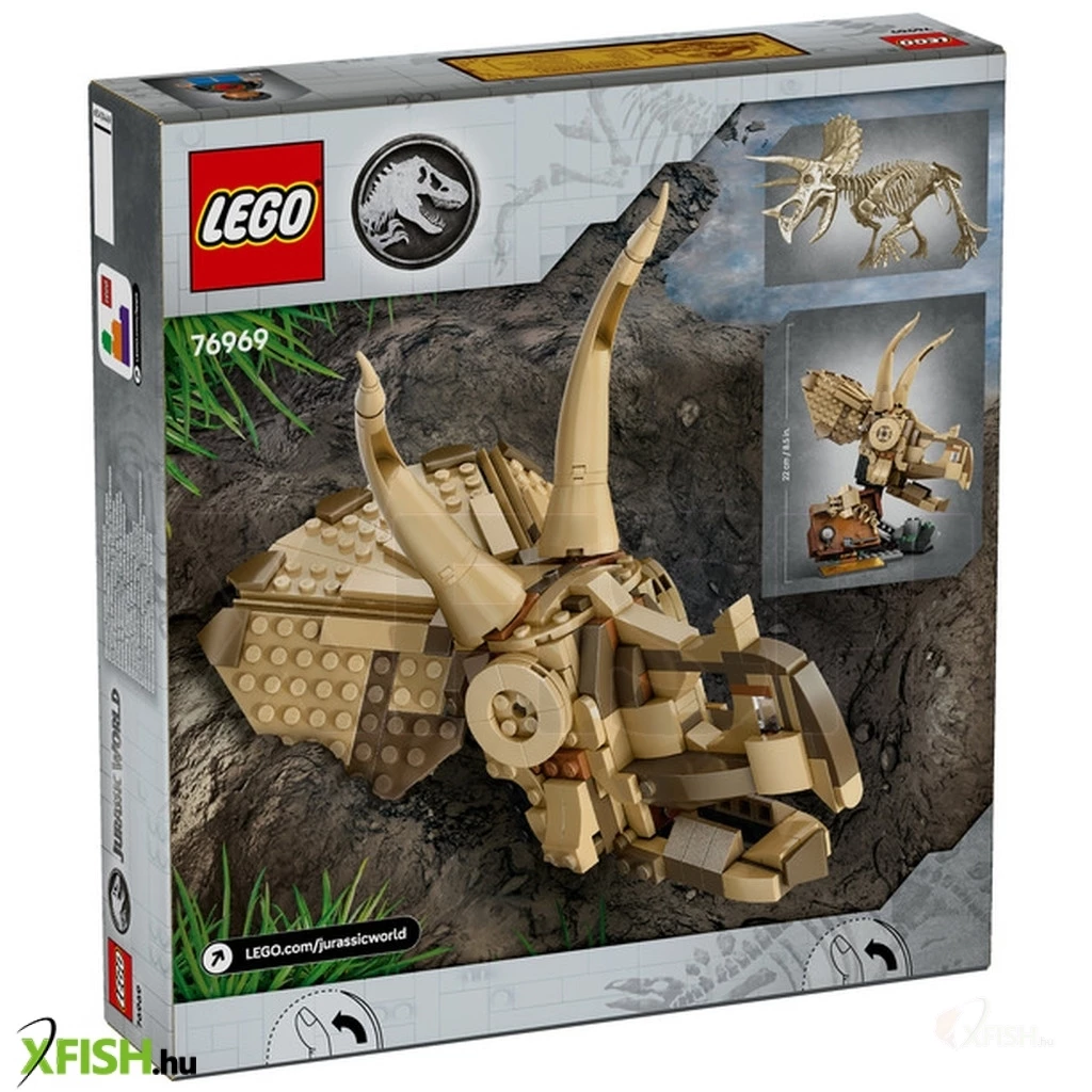 A LEGO® Jurassic World 76969 Dinómaradványok – Triceratops-koponya egy különleges építőkészlet, amely a dinoszaurusz-fosszíliák világát idézi meg. A modellből egy részletgazdag Triceratops koponya építhető meg, amelyet egy talapzaton lehet kiállítani, így a készlet játék és dekoráció is egyben.