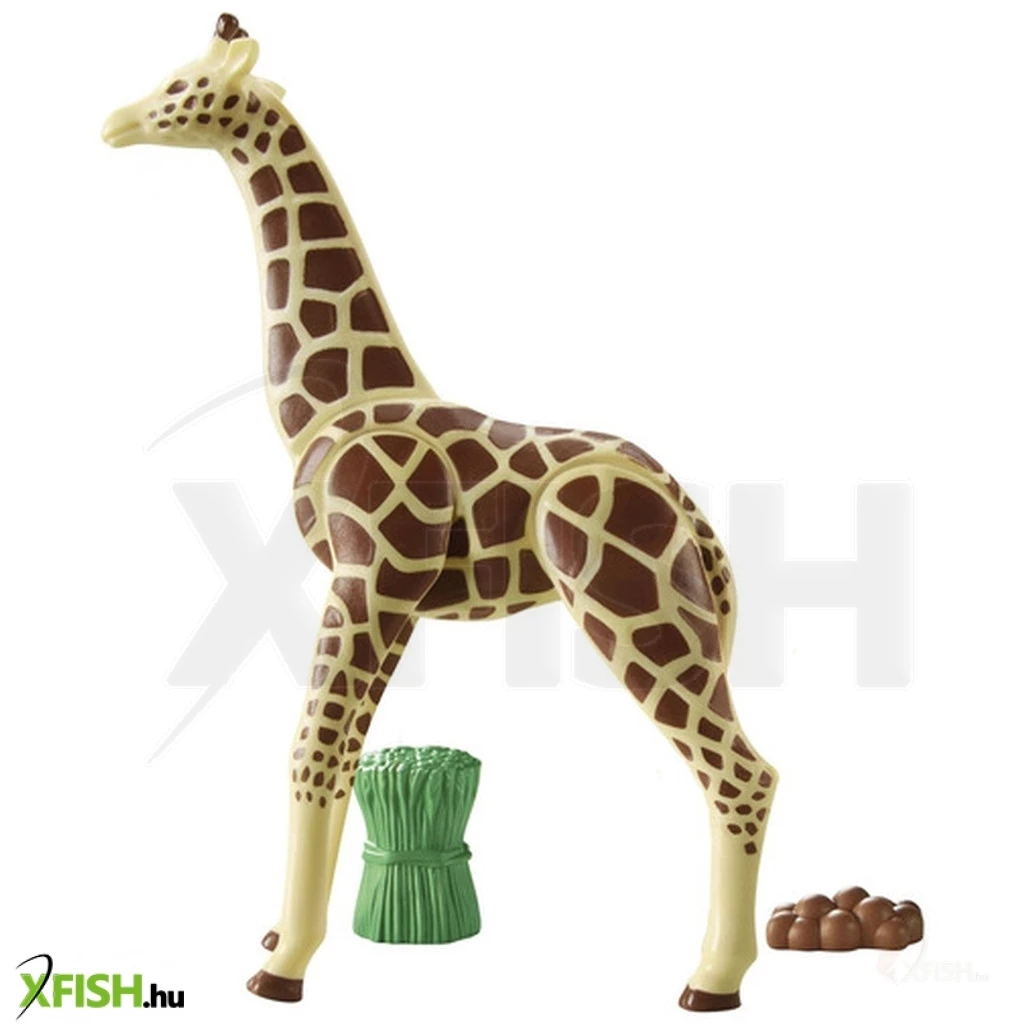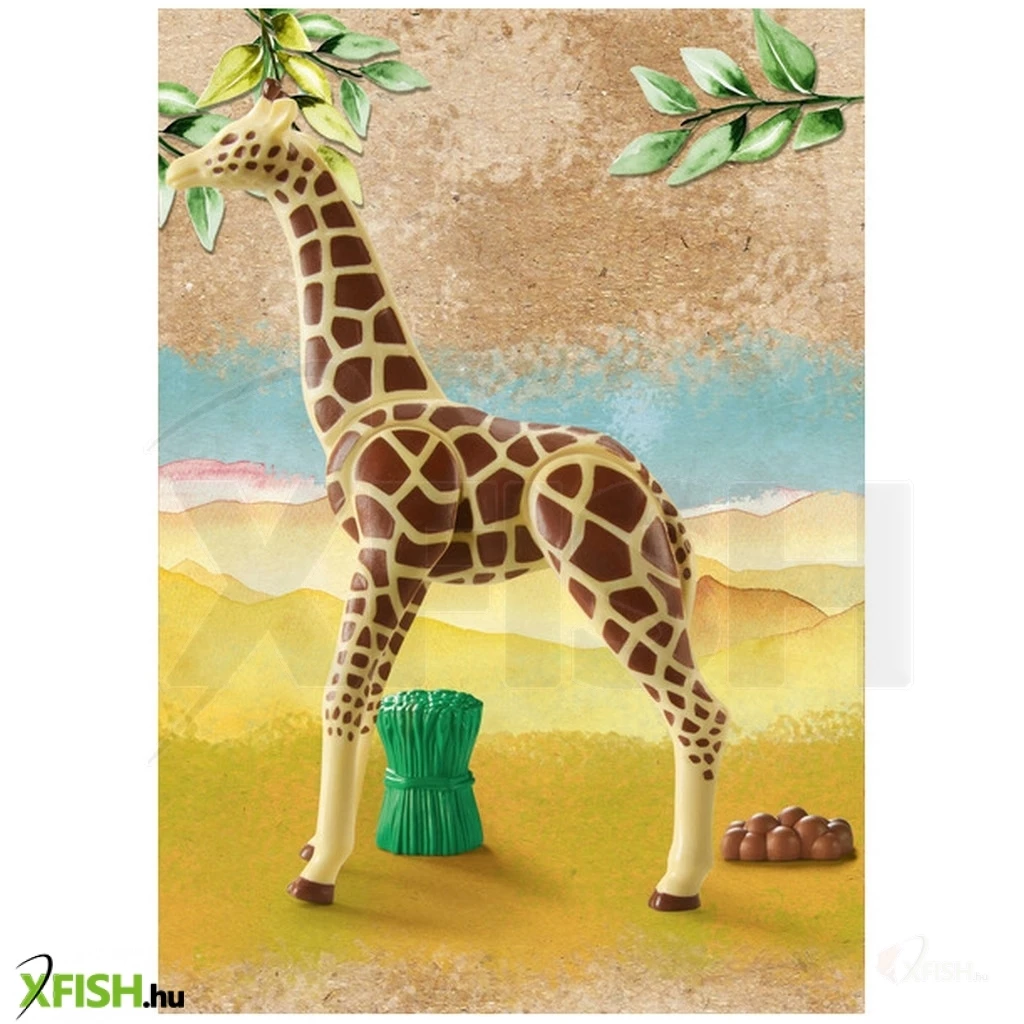 A Playmobil készlet tartalmaz egy zsiráfot, kiegészítőket és egy állatismereti kártyát. Az állatfigura fejét fel-le billentheti, és mind a négy lábát egyenként mozgathatja