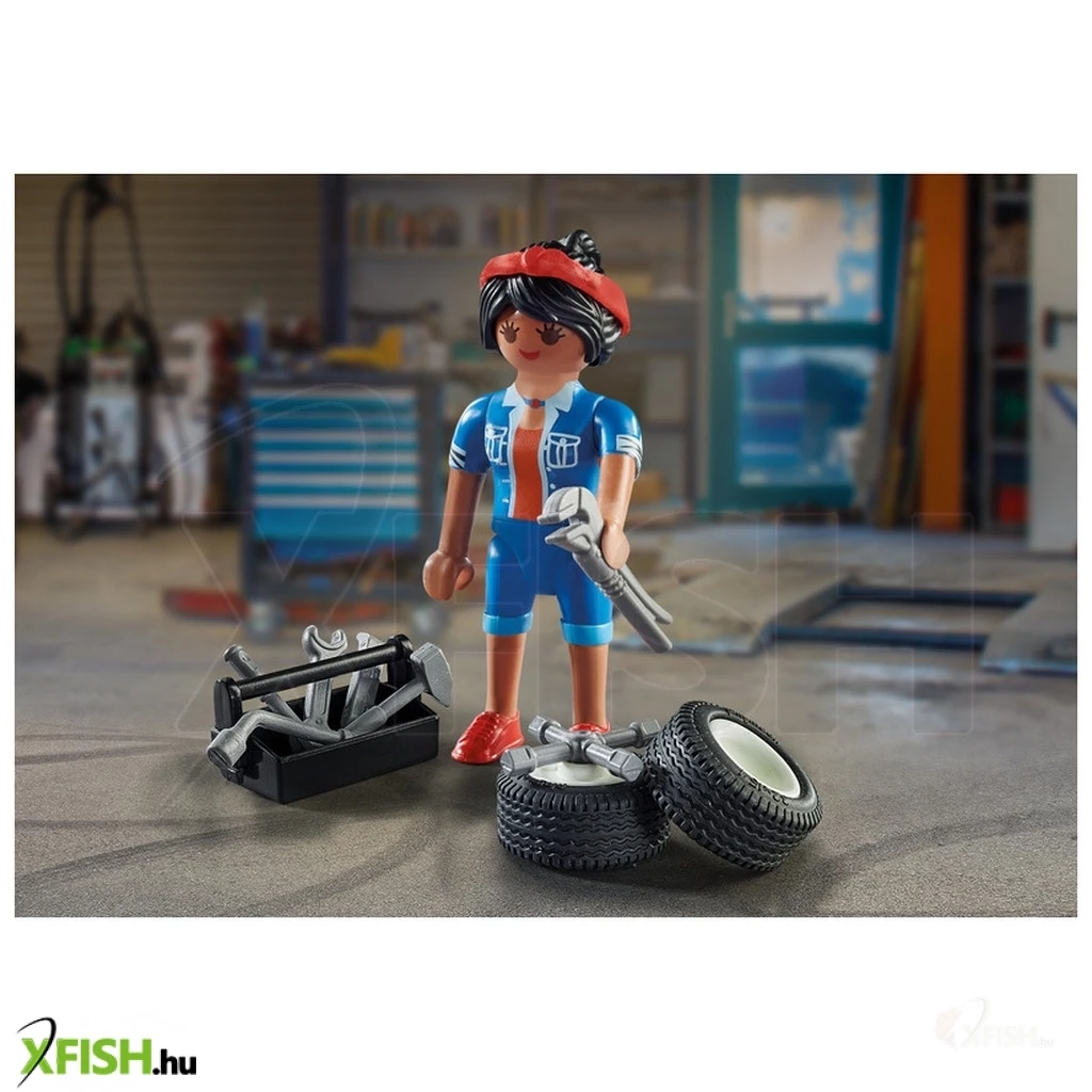 Kezdje el a munkát a Playmobil Autoszerelőjével. A kerekek cseréje előtt az abroncsokat először a felnikre kell húzni. Természetesen minden mozdulat tökéletes a tapasztalt szerelő számára. Aztán a kocsikeresztet használja a kerekek felszereléséhez. Remek játékkészlet kis hobbiszerelőknek. A Special Plus készlet egy Playmobil figurát, két gumit, egy szerszámosládát és egy szerszámkészletet tartalmaz. A szerszámok a szerszámos dobozban tárolhatók. A Playmobil Special Plus figurák nagyszerű játékélményt kínálnak számos kiegészítővel a 4 éves és annál idősebb gyermekek számára. A szerető játékfigurák játszhatók önmagukban, vagy kombinálhatók más Playmobil sorozatokkal.
