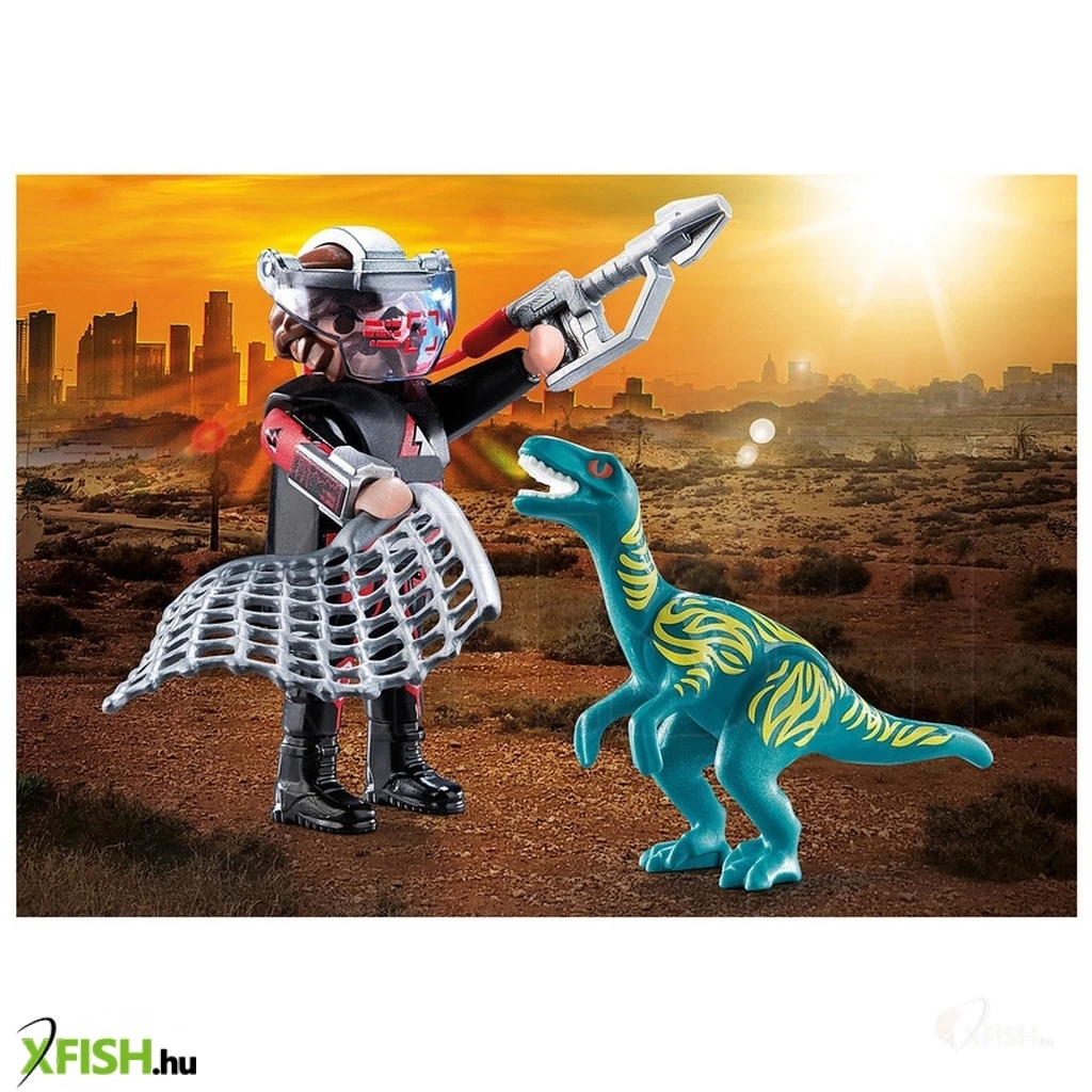 Rabló keresi a velociraptort. Megpróbálja az állatot csapdába csalni és a hálóval elkapni. Szerinted el tudja kapni a dinoszauruszt- A Playmobil DuoPackek kétszer olyan szórakoztatóvá teszik a játékot. Két figura kiegészítőkkel kisebb és nagyobb kalandokhoz.