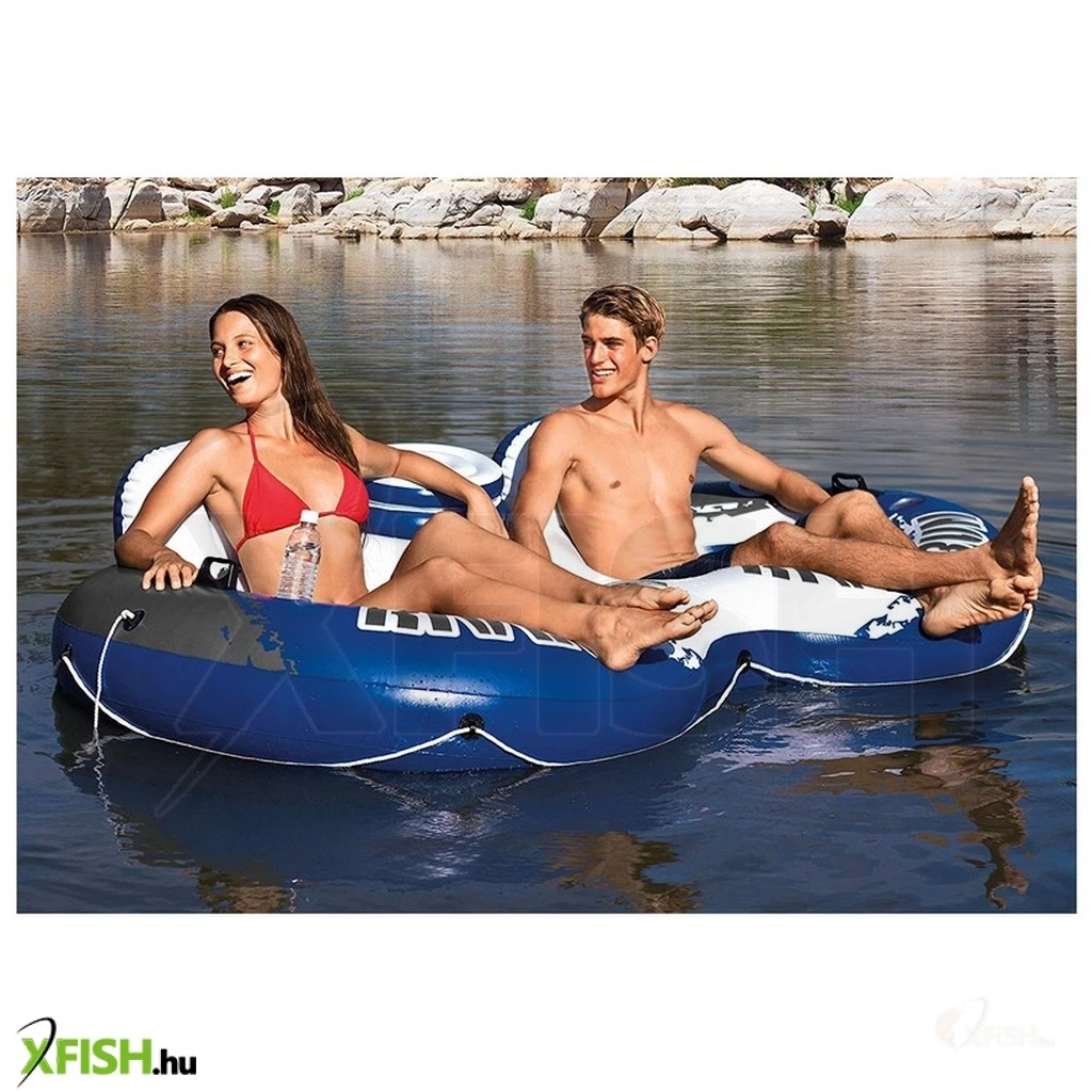 Üljetek be ketten a fotelbe, és napozzatok, hűsöljetek! A River Run kétszemélyes vízifotel kapaszkodókkal és kötéllel felszerelt, PVC-ből készült kényelmes felfújható fotel, amiben akár ketten is élvezhetitek a napfényt, és a hűsítő vizet. A fotel támlával készült, a medence közepén lebegve kipihenhetitek a fáradalmakat. a fotel pohártartóval is fel van szerelve. A River Run kétszemélyes vízifotel felfújt méretei: 243 x 157 cm.