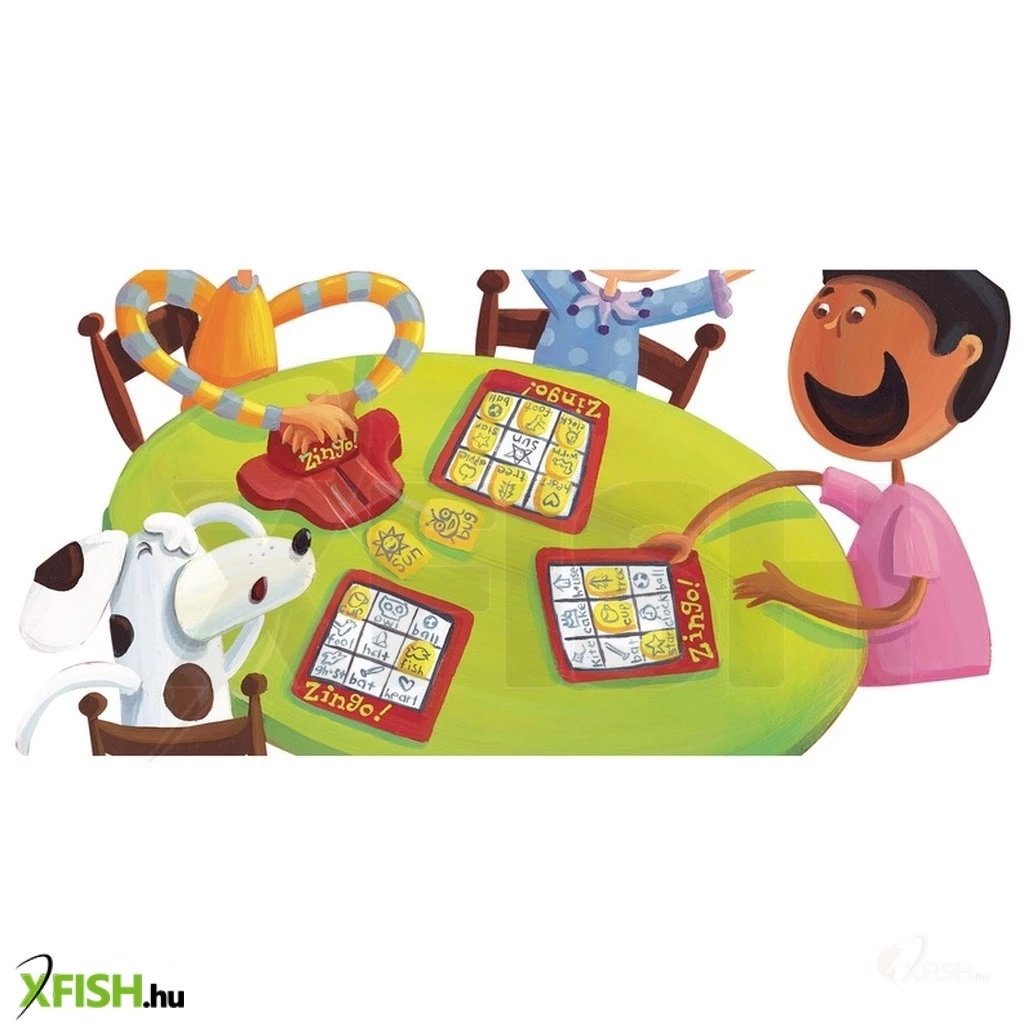 Ki tudja először lefedni a Zingo tábláját- Az angol nyelvű Zingo társasjáték egy különbleges Bingó játék, ahol a gyorsaság, és a megfigyelés is szerepet kap. A sárga lapokra kell a játékosoknak lecsapni, ha szerepel a táblájukon, és aki elő-ször tudja besárgítani a tábláját, csak fel kell kiáltania, hogy Zingo, és megnyeri a játékot. A játék folyamatát még azzal lehet érdekesebbé tenni, hogy angolul, és magyarul is meg kell nevezni a képen szereplő dolgokat.