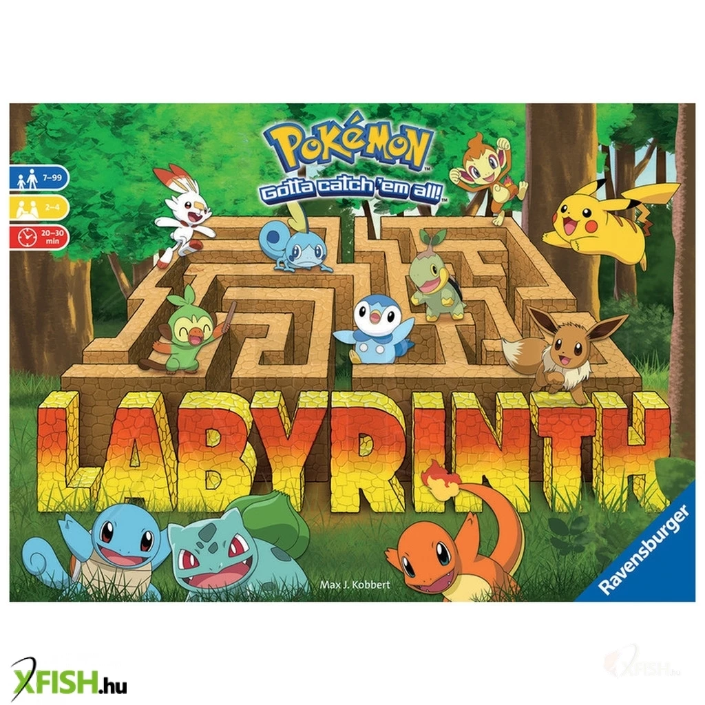 Pokémon: Labirintus családi társasjáték a Ravensburger márktától. Fedezd fel a labirintust Pikachu, Squirtle, Charmander és Bulbasaur bőrébe bújva, hogy megtaláljátok Eevee, Gengar és a többi Pokémon karaktert! Nézd meg, hogy me-lyik Pokémon karakterhez kell eljutnod és tologasd úgy a labirintuskártyákat, hogy minél hamarabb megtaláld őket!