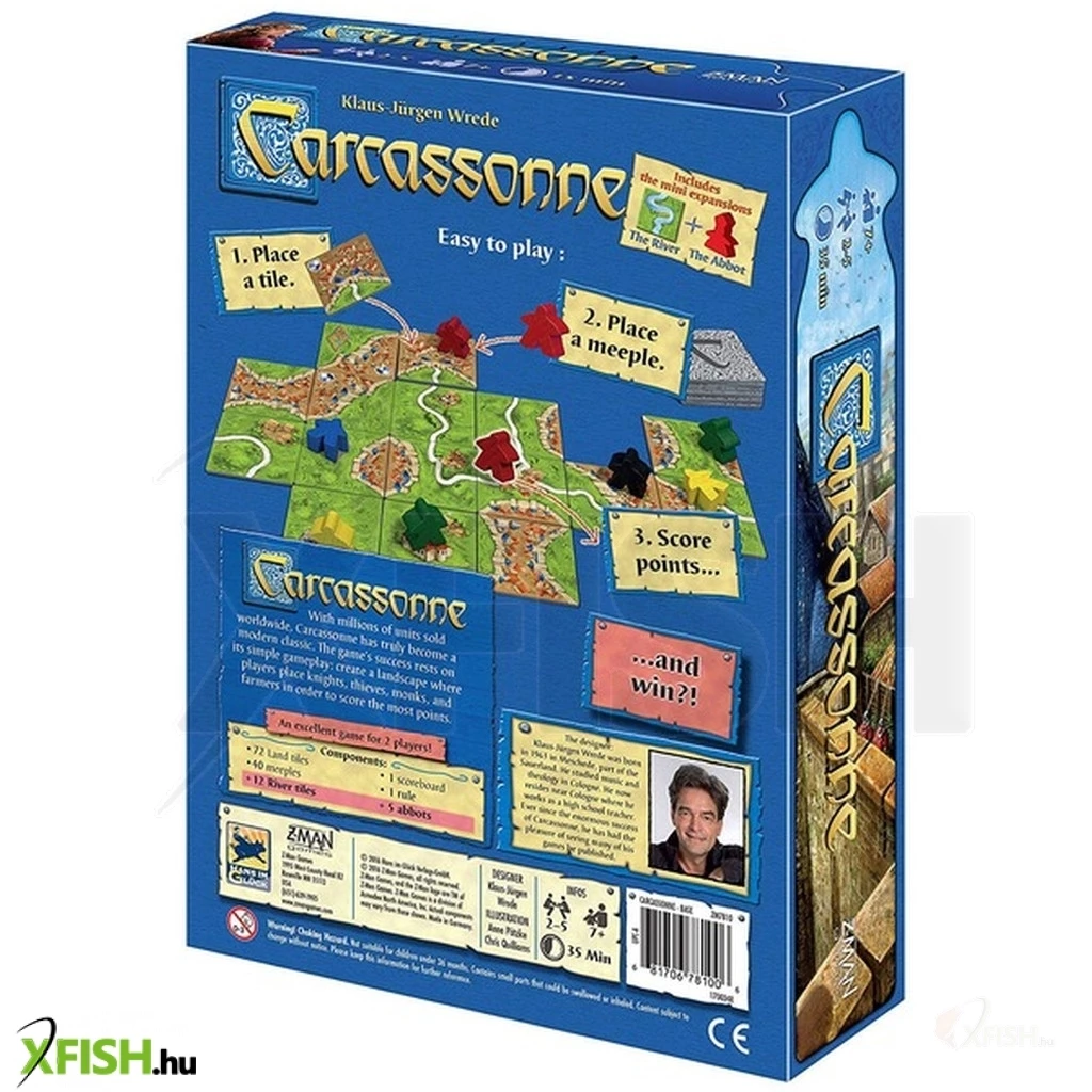 Építsétek fel Carcassonne városát. Kinek marad végül alattvalója- A többszörös díjnyertes Carcassonne társasjáték egy egyszerűbb stratégiai játék, amit akár öten is játszhattok! A játékban a játékosok sorban leraknak egy lapkát, követőt állítanak rá és begyűjtik a pontokat. A tájat szépen berendezik, és a tájakon lévő követők, köztük az útonállók, lovagok, földművesek és szerzetesek segítenek a sikerhez vezető úton! A készlet két mini kiegészítőt, a folyót és az apátot is tartalmazza. Tartalom: 72 tájlapka, 40 követő, 1 értékelő tábla, 12 folyó tájlapka, 5 apát figura, játékszabály.