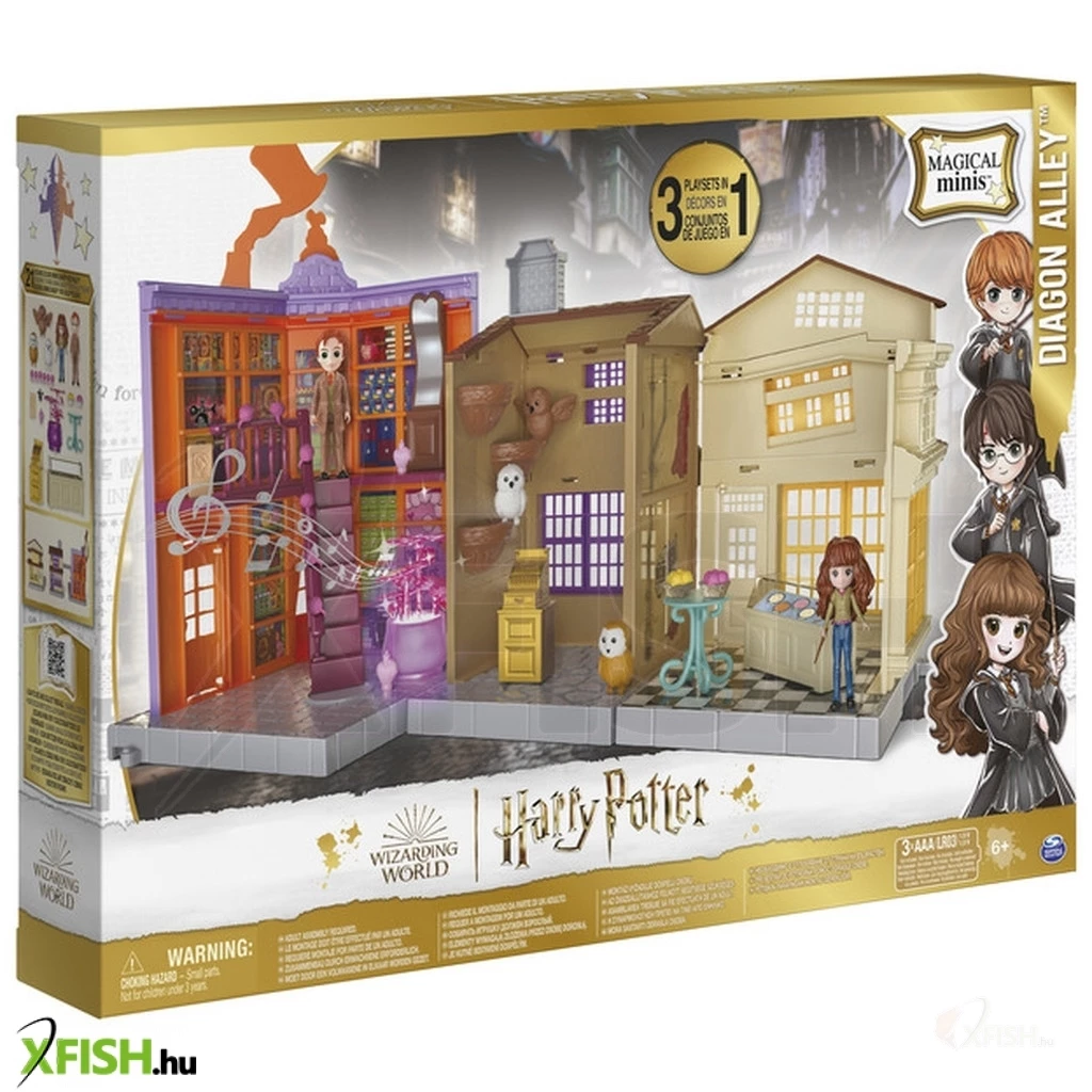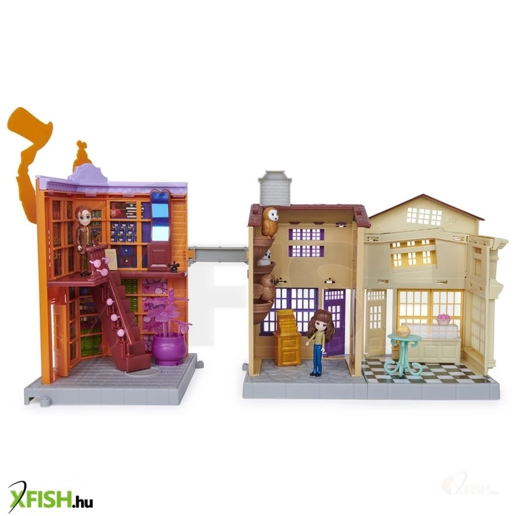 Éleszd újra kedvenc Harry Potter jeleneteidet a Varázsvilág Varázslatos Minis Abszol út játékkészlettel! A Weasleys varázslóbüfé, az Eeylops Bagolybolt és Florian Fortescue fagylaltozója, valamint az exkluzív 3 hüvelykes Hermione Granger és Fred Weasley figurák, 21 kiegészítő, fény- és hangjátékok teszik a Abszol utat a varázsvilági kalandok tökéletes helyszínévé! Kösd össze az üzleteket, ahogy csak akarod, és játssz. Segíts Frednek feltölteni a polcokat, és nyomd meg a viccbolt padlóján lévő gombot, hogy aktiváld a Szerelmi bájital hanghatásait és fényeit! Hermione baglyot választhat az Eeylops Bagoly Emporiumban, mindkét karakter fagylaltos finomságokat fogyaszthat a fagyasztóból Florian Fortescue Fagylaltozójában! Bővítsd a varázsvilágot a Magical Minis Abszol út játékkészlettel!