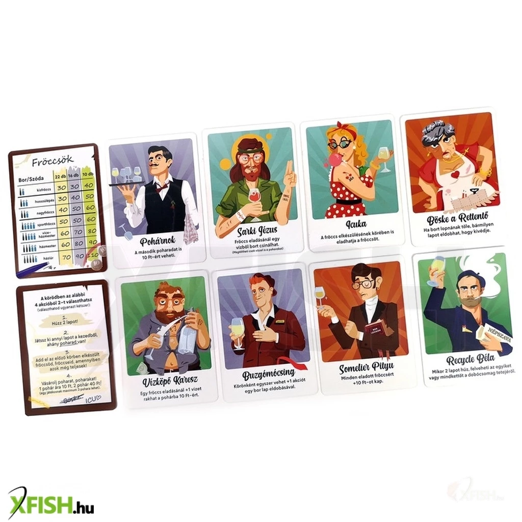 Keverj egy jó fröccsöt, csak a többiek bele ne kavarjanak!Hajnóczy Soma kétszeres bűvész világbajnok könnyed és frissítő kártyajátékban a kocsmahősök szerepébe bújva próbáljátok a legjobb fröccsöket kikeverni és eladni. Eközben pedig igyekeztek a többi játékos dolgát meg-nehezíteni…Alkudozás és egyezkedés szövi át ezt a pörgős és izgalmas partijátékot, amelyben a fröccsök mellől a zsíros deszka sem hiányzik. Egészségedre!