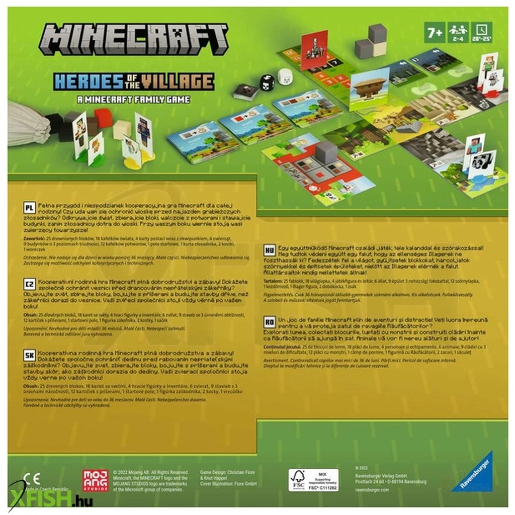 A híres Minecraft játékot a számítógép képernyőjéről ismerheted. De tudtad, hogy a Ravensburger társasjáték formájában az egész családdal játszhatod- A Minecraft: Heroes of the Village kooperatív játékban együtt fogjátok megvédeni a falutokat az ellenséges Illagerek ellen. Újjáépítesz, védekező épületeket építesz és szörnyekkel harcolsz. Mindebben segítségedre lesznek a hűséges háziállatok, akik váratlan képességekkel rendelkeznek. A játék könnyen érthető, és már 7 éves korú gyermekek is játszhatják.