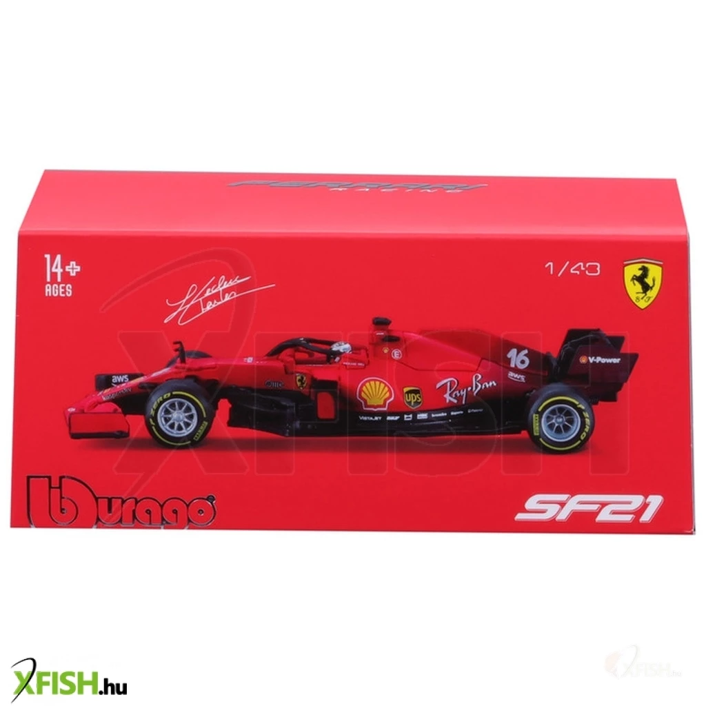 Forma 1-es autó, Ferrari sf21, amely a tökéletes 1:43 méretarányú másolata Charles Leclerc 2021-es versenyautójának. Matt vörös színű, fém, egyes elemei műanyagok a gumiabroncsok pedig gumiból készültek. Lecrerc 16-os rajtszáma megtalálható a versenyautón, valamint a pilóta bukósisakja is a valódi pontos mása.