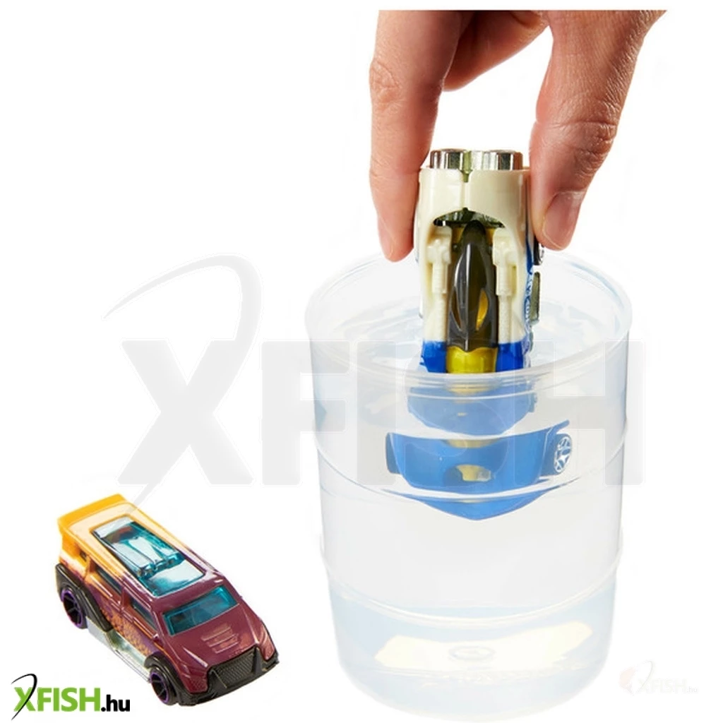 A henger alakú csomagolás két különleges bevonattal ellátott egyedi kisautót rejt. Ha megtöltöd a csövet langyos vízzel és megforgatod benne a járgányokat, a víz elszíneződik és megtörténik a csoda: kiemelve megláthatod a kocsik valódi külsejét és fényezését.