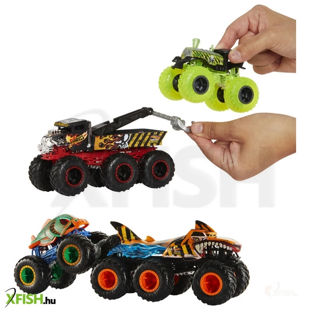 Fedezze fel a Hot Wheels Monster Trucks hatkerekű szörnyjárgányt, amely minden kalandra készen áll! Ez a lenyűgöző jármű nem csak a gyerekek fantáziáját ragadja meg, hanem a felnőttekét is. A hat masszív kerékkel felszerelt szörnyjárgány tökéletes választás minden terepen, legyen szó akár homokos dűnékről, kavicsos utakról vagy városi környezetről.