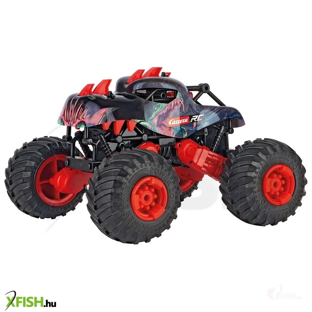 Ez a dinós távirányítós autó a Carrera-tól, a kinézetével, a méretével (31 cm hosszú és 20 cm magas) és a mutatványaival is biztosan lenyűgözi majd a barátaidat és a családtagokat. Elengánsan hajtja végre a 360°-os fordulatot és a nagy kerekeknek valamint a négykerék meghajtásnak köszönhetően bármilyen terepen jól érzi magát - minden akadályt könnyen leküzd, ahogy az egy igazi dinótól el is várható. T-Rex dinó ihlette motívumok és a tetején lévő piros tarajok egyből tekintélyt parancsolnak egy versenyen. Az autó 1:16 méretarányban és Ready to Run kivitelben érkezik, ami azt jelenti, hogy azonnal indulásra kész. Akár 15 km/h-ás sebességre is képes és 30 percig tud száguldozni egy feltöltéssel.
