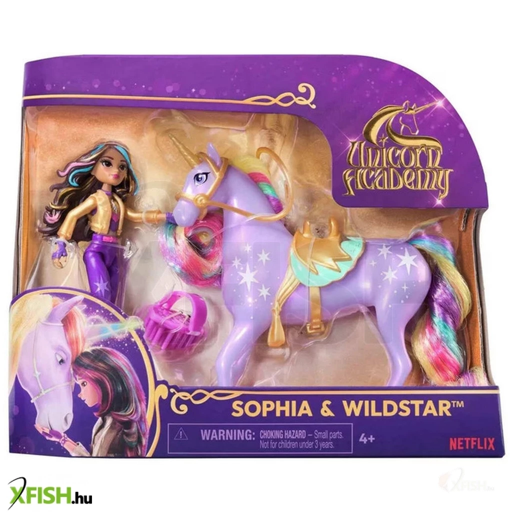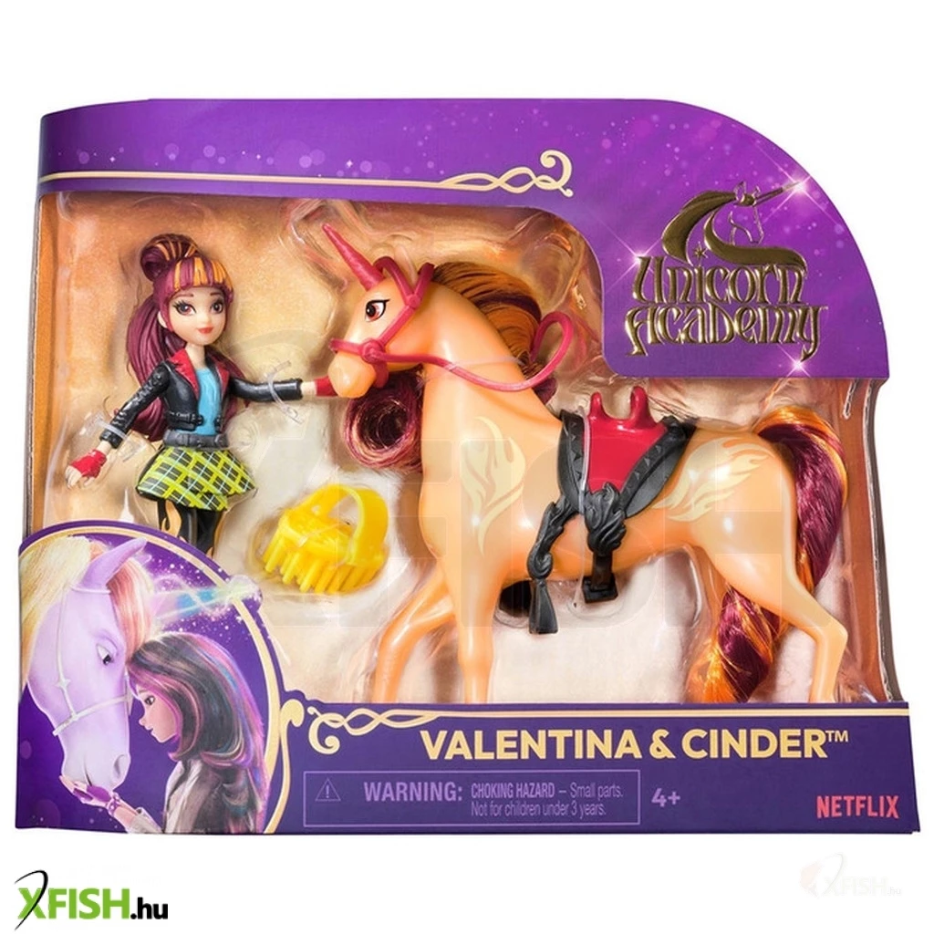 Fedezd fel az Unikornis Akadémia világát. Az Unikornis Akadémia Netflix sorozat és mese könyv széria, egy varázslatos iskoláról, ahol a diákok legjobb barátai unikornisok. Amikor egy sötét erő az Egyszarvú-sziget elpusztításával fenyeget, egy csapa bátor tinédzsernek és öt iskolatársának fel kell lázadnia, hogy megvédjék szeretett mágikus akadémiájukat. Légy te is a kaland részese és szerezd meg a kedvenc karaktereidet. Ismerd meg Valentinát és Cinder -t és alkoss új fantasztikus történeteket. Valentina a sorozatból ismert valósághű részletekkel rendelkezik és 7 artikulációs ponttal, a dinamikus pózokhoz. A készlet egy levehető nyerget és fésűt is tartalmaz, hogy Cinder sörényét kedvedre alakíthasd. Szerezz új barátokat és légy részese a legfantasztikus kalandoknak.
