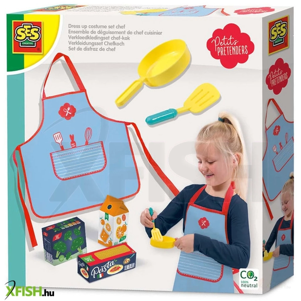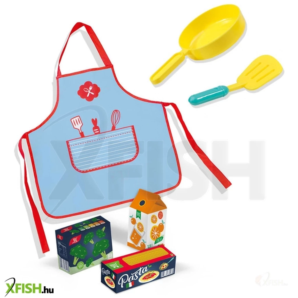 A készlet tartalma: szakács kötény, 2 db konyhai eszköz, 3 db élelmiszer