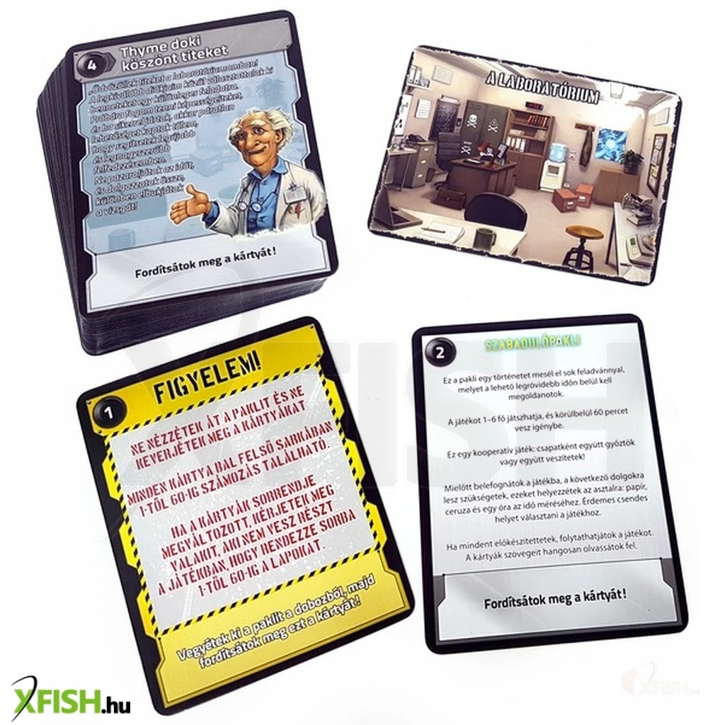 Vigyél magaddal mindenhova egy szabadulószoba játékot! A Szabadulópakli - Időpróba kártyajáték különleges feladványok gyűjteménye, amiket megoldva ki tudtok jutni a szorult helyzetből. A történetben Thyme doki próbára akarja tenni a képességeiteket, de mialatt elmondani, miről is van szó, véletlenül lenyom egy gombot. A csapóajtó kinyílik a doki alatt, nehéz rácsok ereszkednek le, vészjelző szirénázik, és a laboratórium teljesen lezáródik. Megtaláljátok időre a kivezető utat- A Szabadulópakli - Időpróba kártyajáték a Szabadulószoba játék hordozható változata.