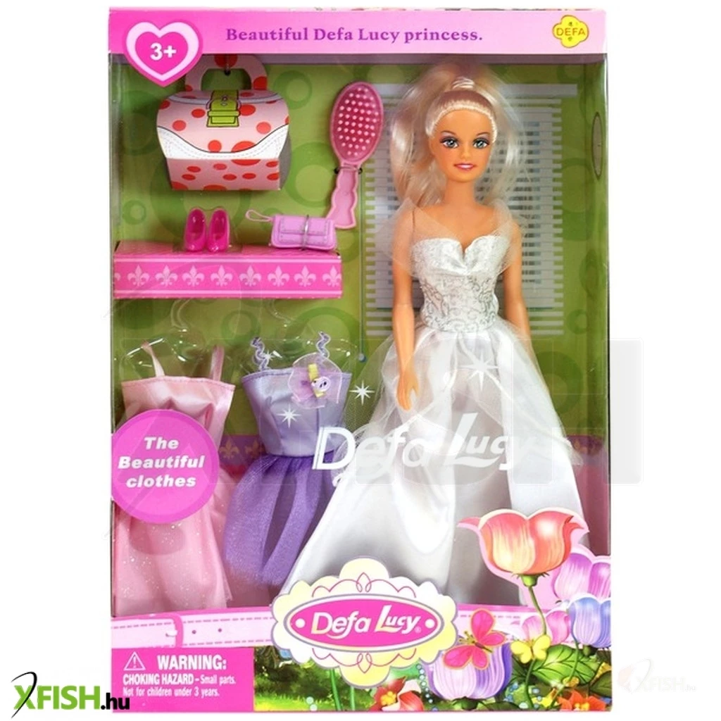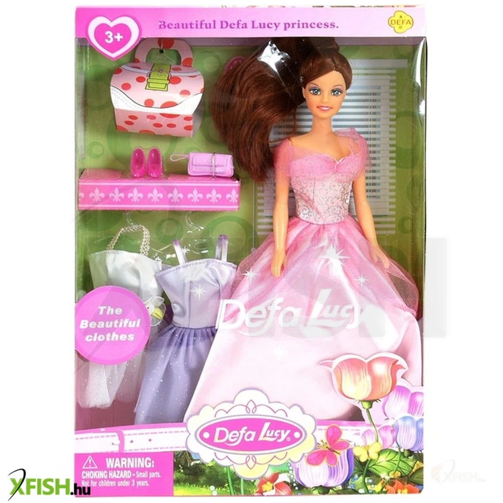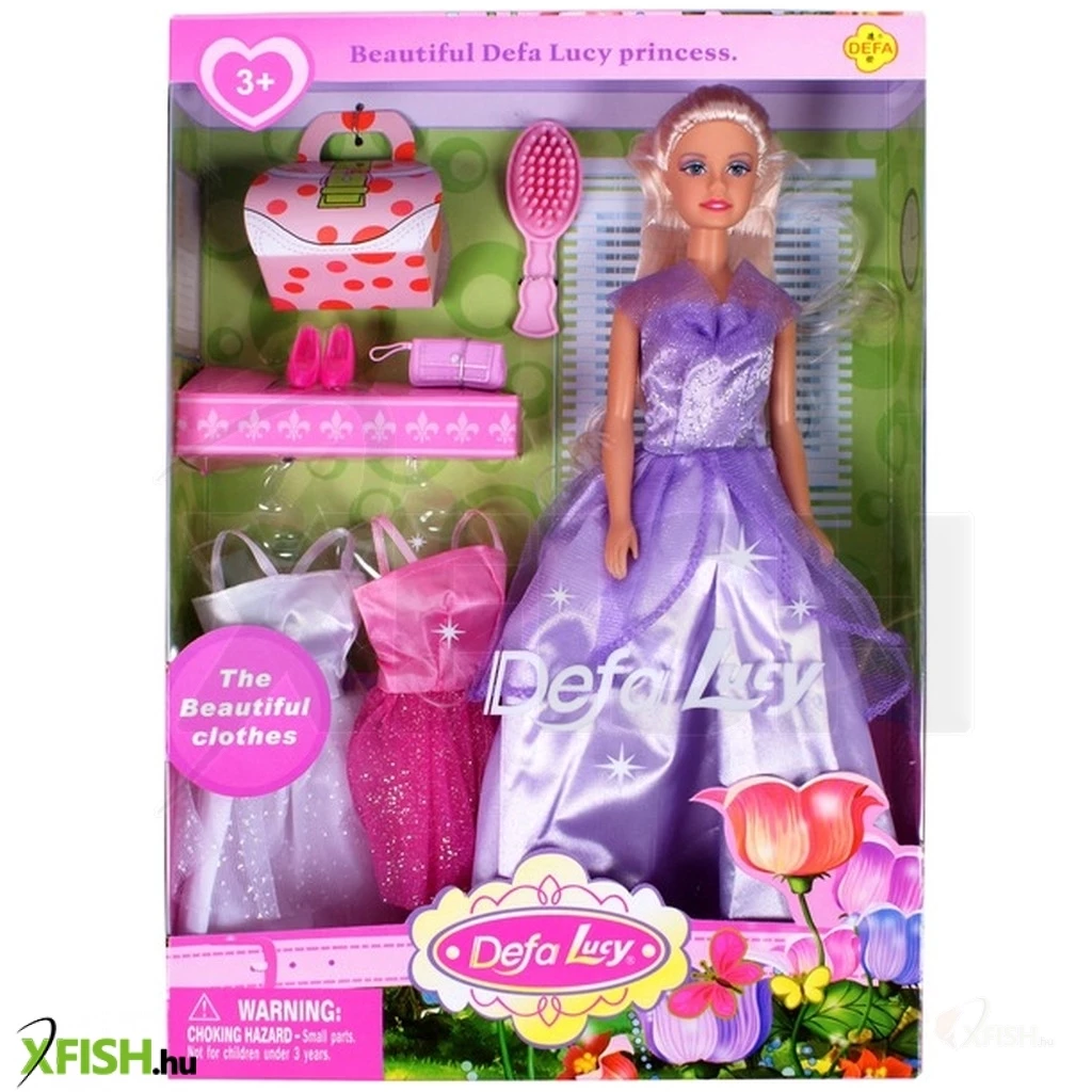 Öltöztesd Defa Lucy hercegnőd alkalomhoz illően! A Defa Lucy hercegnő baba három ruhával készletben egy gyönyörű hercegnő babát találsz, egy komplett ruhatárral és kiegészítőkkel! A hercegnők parti-ruhába, kis- és nagyestélyibe is be tudod öltöztetni, és divatos retikült, táskát, cipőt tudsz hozzá adni. A Defa Lucy hercegnő baba haját ki tudod fésülni, a hercegnő minden ruhája gazdagon díszített, csillogó részekkel van dekorálva.