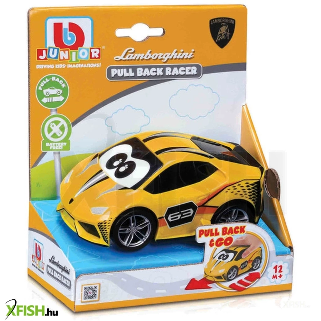 Bburago Jr. Visszahúzós versenyautó - Lamborghini A Bburago Jr. visszahúzós versenyautó Lamborghini modellje kifejezetten a legkisebb autórajongók számára készült. Ez a játékautó ötvözi a klasszikus sportautók izgalmát a kisgyermekek számára biztonságos és könnyen kezelhető kialakítással. A játékautó visszahúzós mechanizmussal működik, így a gyerekek egyszerűen csak hátrahúzzák, majd elengedik, és az autó máris száguldani kezd. Ez nemcsak szórakoztató, hanem fejleszti a finommotoros készségeket és a mozgáskoordinációt is. A játékautó formatervezése lekerekített, nincsenek éles szélek vagy apró, lenyelhető alkatrészek, így már akár 1 éves kortól is biztonságosan használható. A színes, vidám megjelenés azonnal megragadja a gyerekek figyelmét, a könnyű műanyag kialakítás pedig lehetővé teszi, hogy a legkisebbek is könnyedén tologassák vagy kézbe vegyék. A Bburago Jr. sorozat célja, hogy a híres autómárkák világát elérhetővé tegye a kisgyermekek számára is, miközben játékosan fejleszti őket.