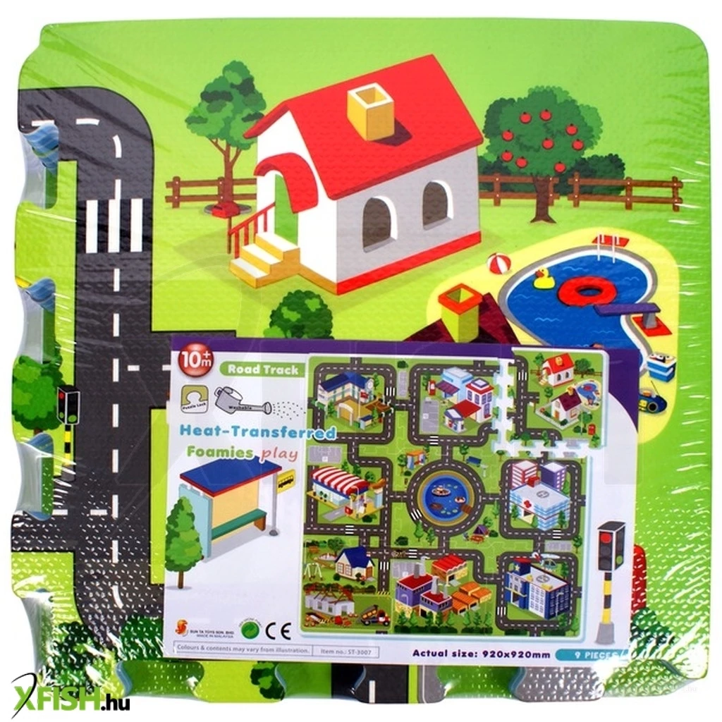 Rakj ki egy várost a habtapi mozaiklapokból! A Nagyváros habszivacs 9 darabos puzzle nagy, puha anyagból készült szivacslapokat tartalmaz, autóutakkal, házakkal dekorálva. A szőnyegen tologathatod a kedvenc játékautóidat, de akár biztonsági játszószőnyegként is használható, ha elesel, a szőnyeg megóv a sérülésektől. A lapok könnyen egymáshoz illeszthetők, és többféle módon is le tudod őket rakni. A Nagyváros habszivacs 9 darabos puzzle mozaikdarabjainak mérete: 30 x 30 cm.