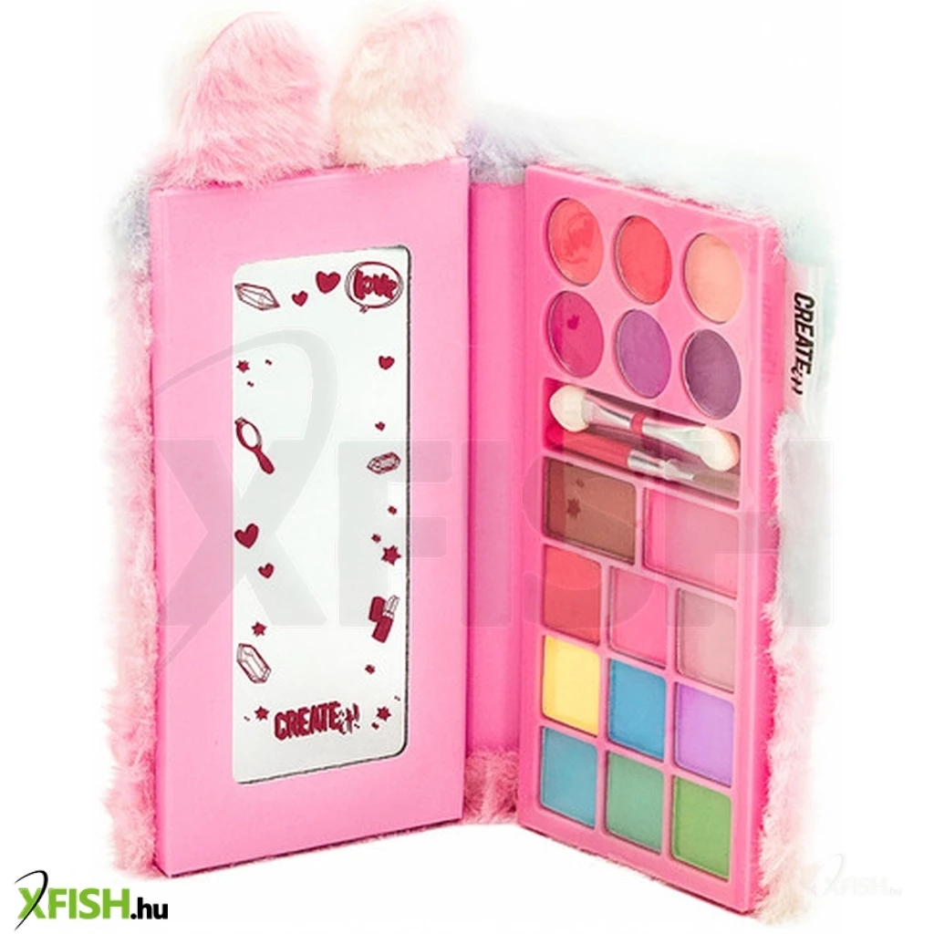 A Create it! Sminkszett plüss tokban mágneses zárral egy színes és izgalmas készlet, amely ideális választás lehet a kreatív sminkelés iránt érdeklődő lányok számára.