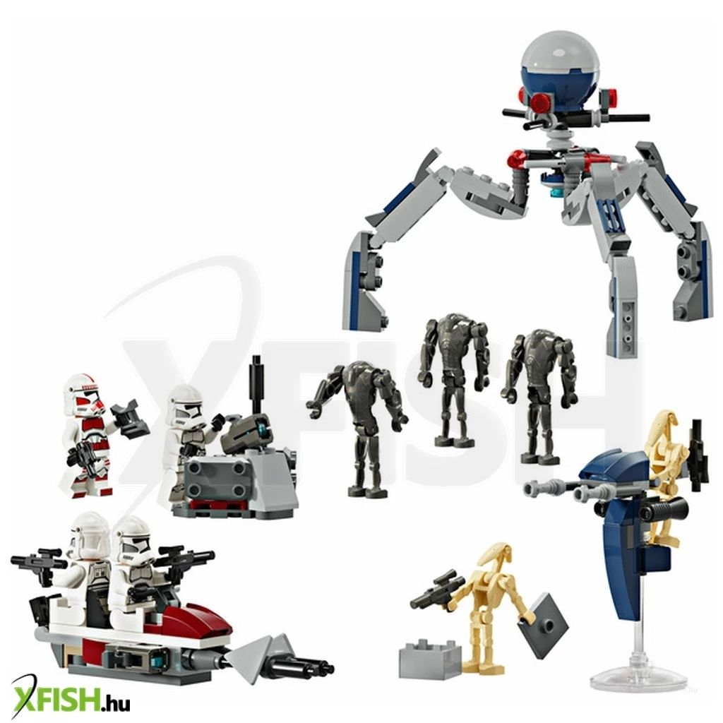 Játszd el az akciódús klónkatona vs. harci droid csatákat egy olyan készlettel, amely 4 Lego(R) Star Wars™ minifigurát és 5 Lego figurát tartalmaz.