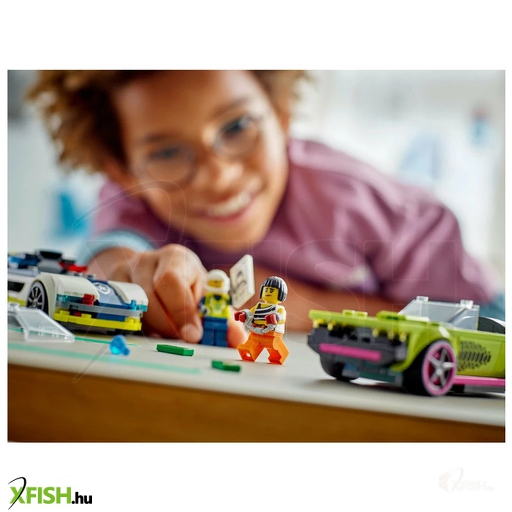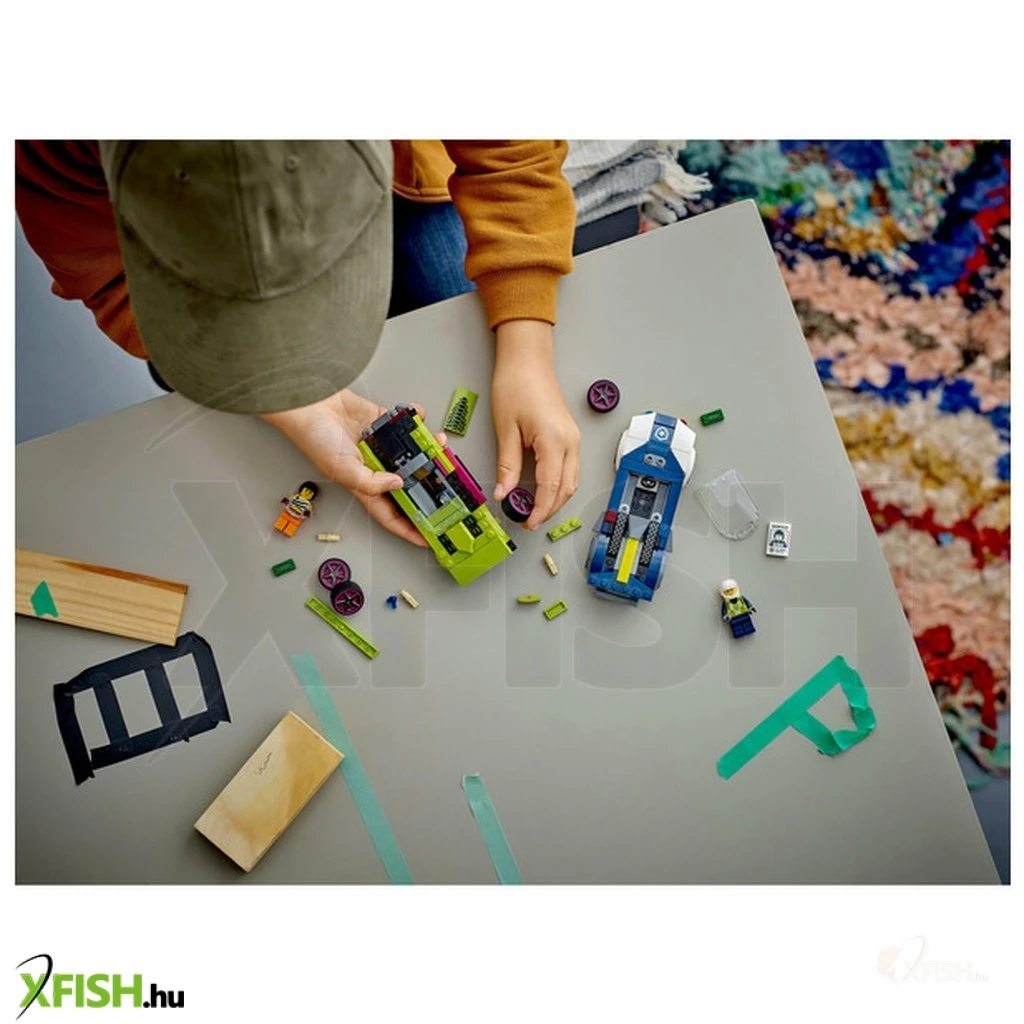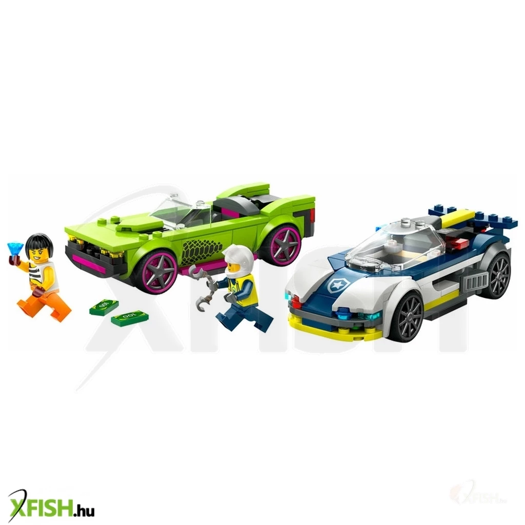 Szórakoztató Lego(R) City autós játékkészlet 6 éven felülieknek, rendőri elfogó járművel és egy sportautóval, amelyekhez egy rendőrtiszt és egy szélhámos minifigura is tartozik a hősies üldözéshez.