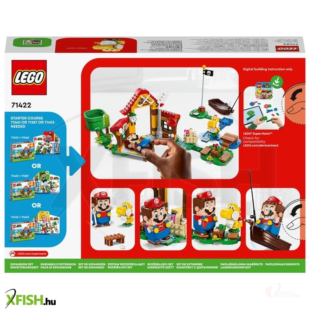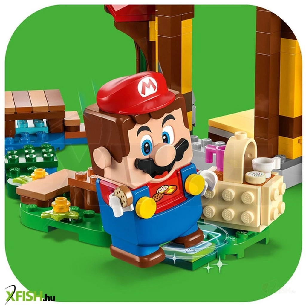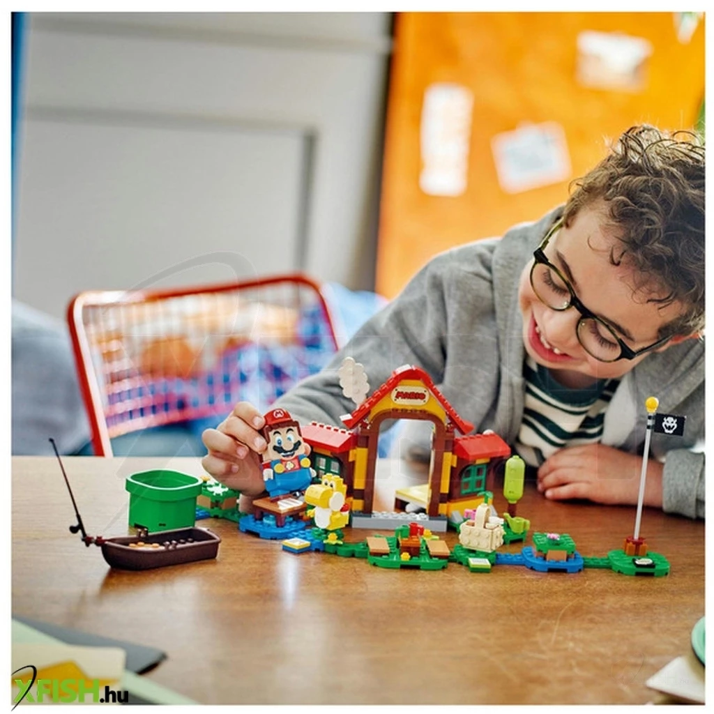 A gyerekek mókával teli pályát építhetnek a menő Lego(R) Super Mario™ Piknik Mario házánál kiegészítő szettel (71422). A részletgazdag, kockákból épült ház és a kert rengeteg lehetőséget rejt magában a szerepjátékra és arra, hogy a játékosok digitális érméket gyűjtsenek az interaktív Lego(R) Mario™, Lego(R) Luigi™ és Lego(R) Peach figurákkal. (A figurákat a szett nem tartalmazza.) Köszönj Yellow Yoshinak, aludj az ágyban, egyél“ sütit a piknikkosárból locsold meg“ a zöldségeket a kertben, játssz hokit vagy horgássz a csónakban! Fontos: a 71360, a 71387 vagy a 71403 kezdőpálya szükséges az interaktív játékhoz. A legjobb ajándék Ez a gyűjthető játékkészlet szuper ajándék azoknak a 6+ éves gyermekeknek, akik nem akarnak lemaradni a legújabb trendekről. Töltsd le a Lego Super Mario appot az építési útmutatóért, a kreatív ötletekért és sok más vidám dologért, hogy a gyermekeknek még izgalmasabb legyen ez a kreatív élmény. Végtelen lehetőségek A Lego Super Mario kezdőpályák és kiegészítő szettek segítségével a rajongók bővíthetik és átépíthetik a pályákat, vagy újakat találhatnak ki az órákon át tartó érmegyűjtő játékhoz.