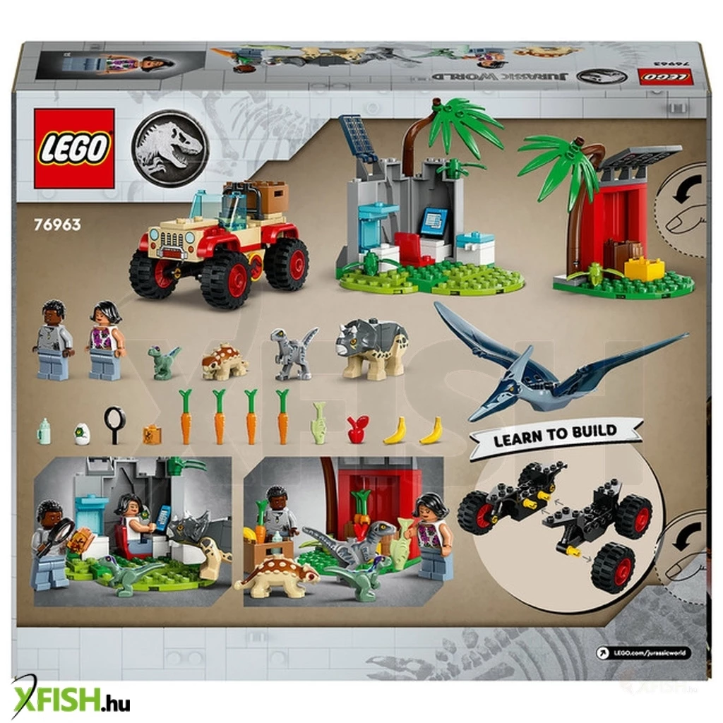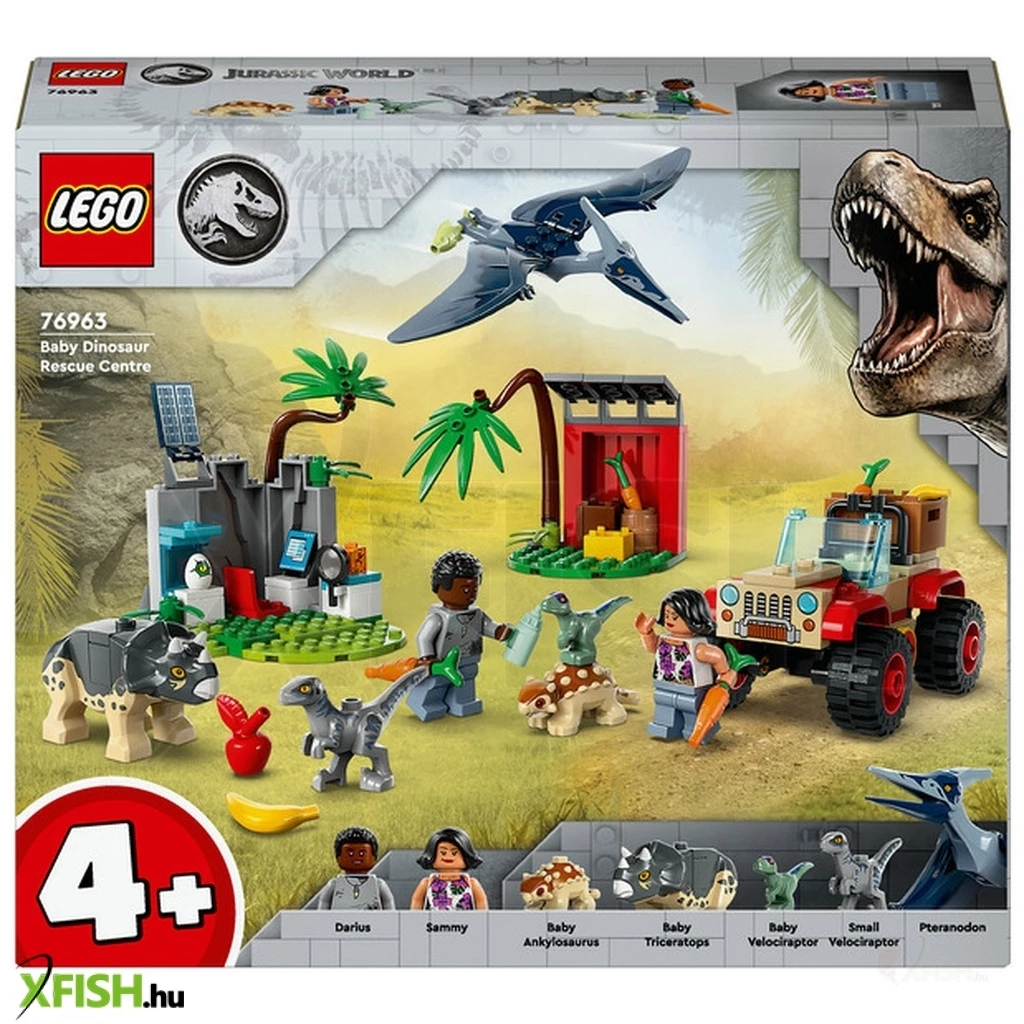 A 4+ éves kis rajongók vigyázhatnak a kisdinókra és játszhatnak velük, miközben megtanulnak építeni a Lego(R) Jurassic World Kis dinók mentőközpont (76963) szettel. Tartozik hozzá egy terepjáró és egy kutatóterület barlangfallal. Mindkettőhöz vannak kezdőkocka-elemek és van egy etetőállomás. 2 minifigura, egy kis ankylosaurus, egy triceratops, egy velociraptor figura, egy kis velociraptor és egy felnőtt pteranodon dinófigura biztosítja, hogy gyorsan megkezdődjön a játék. A játékhoz mellékelt illusztrált útmutató tökéletes olyan gyerekeknek, akik még csak most tanulnak olvasni. Ha pedig egy kis digitális mókára is vágynak, a Lego Builder appban intuitív nagyító és forgató eszközök várnak rájuk, amelyekkel a lányok és a fiúk építés közben láthatják a modell képét. A 4 éves kortól ajánlott Lego Jurassic World készletek megismertetik a gyerekekkel a kedvenc filmes és TV-s szereplőiket, és ez a Lego(R) szett egy mókás ajándék is lehet. Ezek a szettek különleges kezdőkockákat tartalmaznak, így még a kezdő építők is építhetnek járműveket, épületeket és sok minden mást, amihez csupán egy kevés segítségre lesz szükségük egy idősebb testvértől vagy felnőttől.