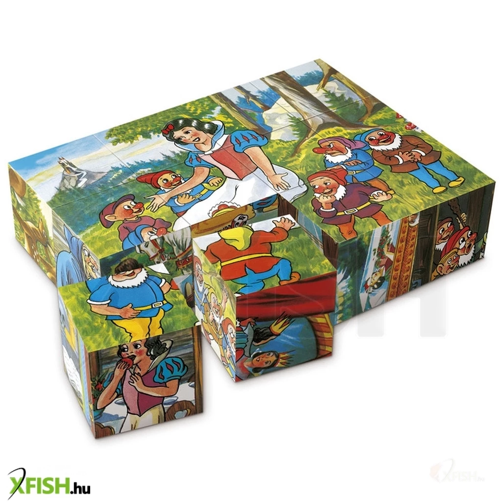 Rakj ki hat képet a Hófehérke szereplőiről! A 12 darabos fa mesekocka dobozában minden oldalukon matricával díszített kockákat találsz, amikből hat képet tudsz kirakni. A kockák fából készültek, a gyerekek építőkockaként is tudnak játszani vele.