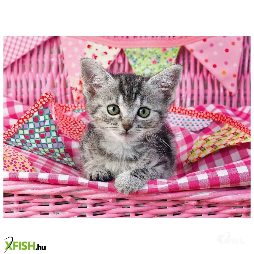 Ezen a tökéletes képen egy szürke cirmos cica látható, aki egy vintage anyagokkal teli piknikkosárban pihen. Úgy tűnik, ez a kis hölgy nagyon elégedett magával, amiért ilyen kényelmes pihenőhelyet talált, és milyen kedves a gazdája, hogy ilyen szép rózsaszín szöveteket választott neki, hogy a Purrfect Cat Gifts-en pihenjen.
