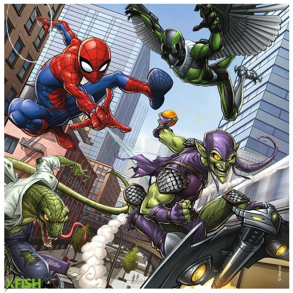 Ez a 3 dinamikus képből álló készlet a Pókembert mutatja be akció közben, amint megpróbálja leküzdeni az összes gonosz ellenséget, a szupererős kölyök arachnidot, a zöld koboldot, a keselyűt és a gyíkot.