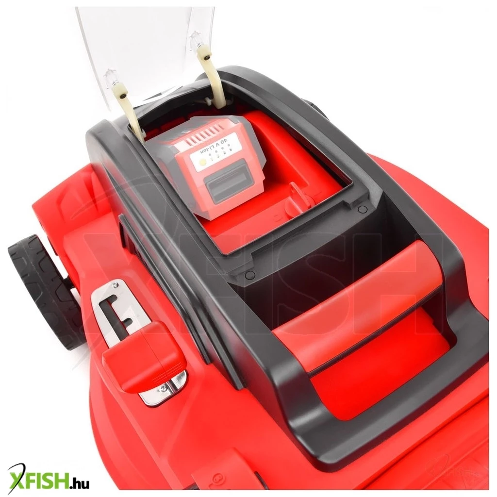A fűnyíró lítium-ion akkumulátorral működik, a 40 V-os rendszer három különböző kapacitással támogatja: 2,5, 4 és 5 Ah. Az alváza tartós műanyagból készült, amely nemcsak tartósságot biztosít, hanem a 43 cm-es vágószélességű acél pengével kombinálva megbízható vágást eredményez. Egyszerűen állítható központi magasságállítása lehetővé teszi, hogy 25 és 75 mm között variálja a vágási magasságot, így a különböző fűfajták igényeihez igazítható.