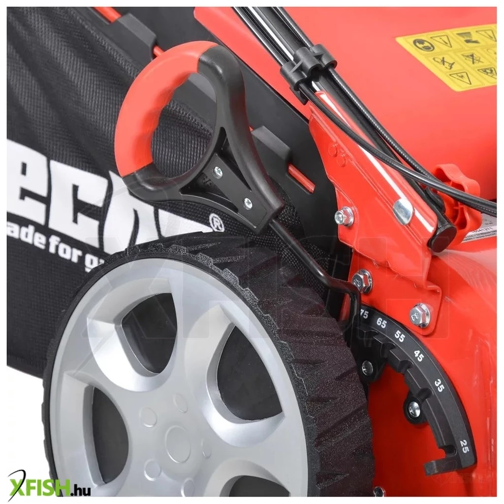Ez a fűnyíró különösen hasznos olyan kertekben, ahol számos akadály található, hiszen a gép könnyedén kikerüli a díszbokrokat, fákat és más kertielemeket. Ha az első kereket egyenes állásban rögzíti, a gép kiválóan tartja az irányt, így hatékonyan alkalmazható nagyobb, egyenes gyepfelületeken is. A meghajtásért egy erőteljes 173 cm³, 6 lóerős Hecht OHV motor felel, amely elegendő teljesítményt biztosít mind a fűnyíráshoz, mind az önjáró funkcióhoz. A fűnyíró menetsebessége kb. 3,3 km/h.