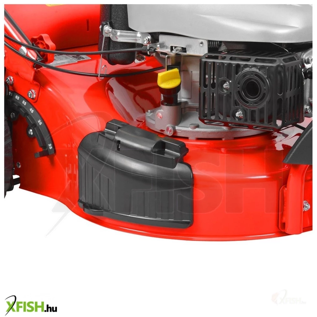 Az erőteljes 135 cm³, 5 lóerős Hecht OHV motor a kiváló teljesítményt és megbízhatóságot nyújtja, amivel az önjáró fűnyíró maximális vágási hatékonyságot biztosít akár sűrűbb füvön is. A motor támogatja a fűnyíró menetsebességét is, ami hozzávetőlegesen 3,3 km/h, így gyorsan elvégezheti a munkát anélkül, hogy a levágott fű megnyomná a területet. Az erős fémház oldalkidobóval van ellátva, ami tovább növeli a sokoldalúságot, és az oldalkidobó toldatával a nagyra nőtt fű vágása is problémamentes.