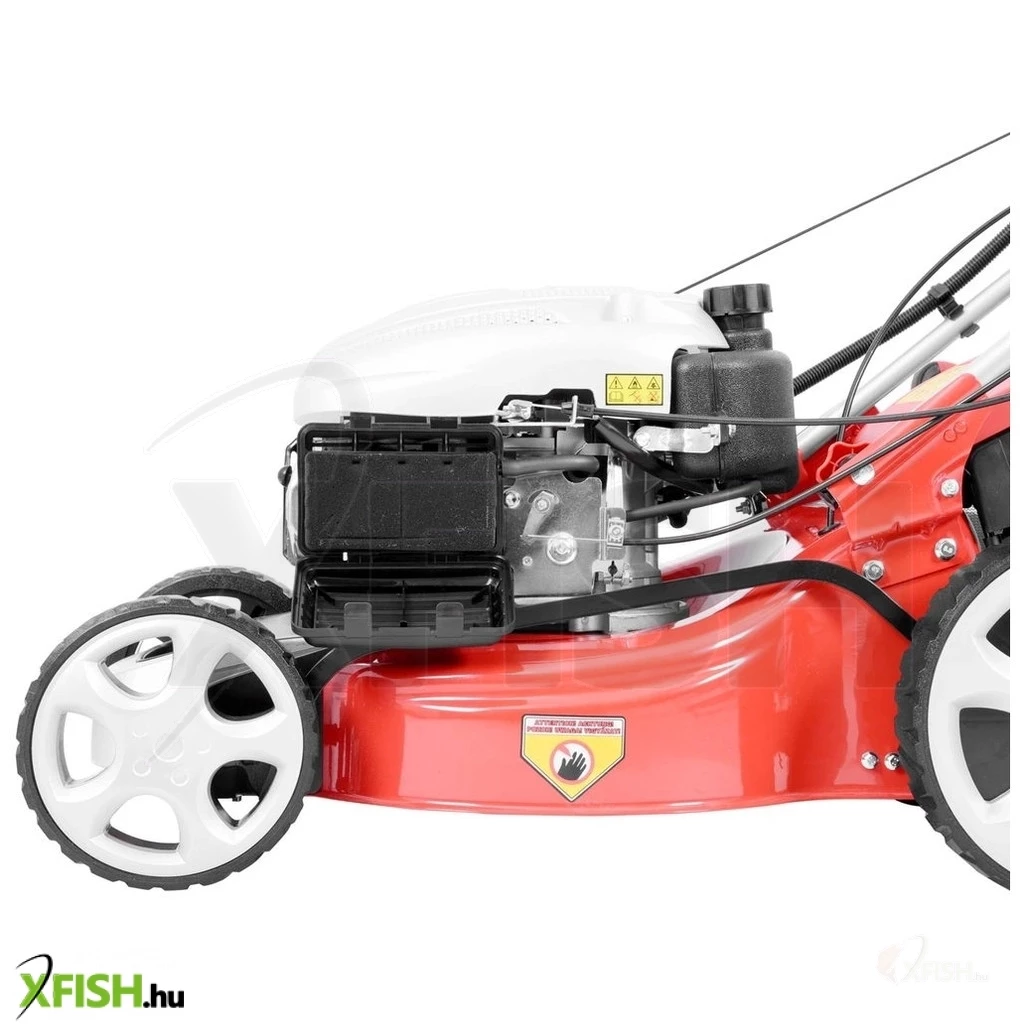 A 135 cm3-es, 3,3 HP teljesítményű Hecht OHV motor biztosítja a gép erőteljes működését, amely nemcsak a precíz fűnyírást, hanem az önjáró funkcióval a könnyed mozgást is garantálja, 3,6 km/h sebességgel. Az erős fém ház oldalkidobó nyílással van ellátva, amelyhez egy takaró is tartozik. Ez lehetővé teszi, hogy nagyobbra nőtt füvet is gond nélkül nyírhassunk, anélkül, hogy a vágás után maradt gyűjtőkosarat használnánk. Ezzel elkerülhetjük, hogy meg kelljen taposnunk a levágott füvet, és a gép sem tömítődik el.