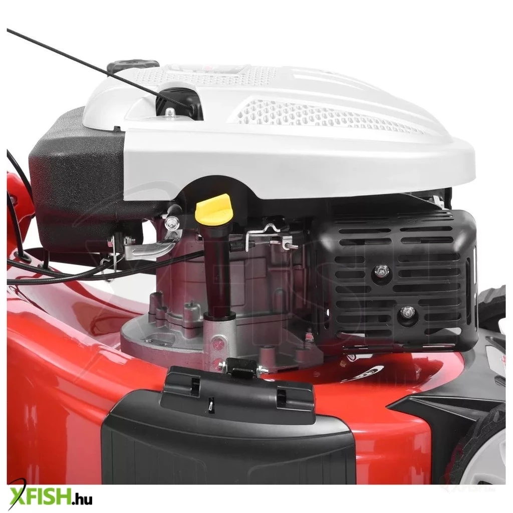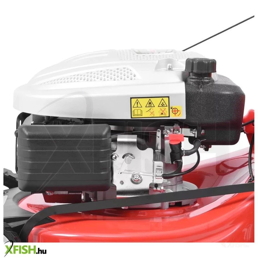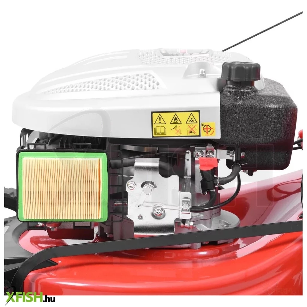 A berántós indítás mellett a szívató is rendelkezésre áll, mely a motor hidegindítását nagyban megkönnyíti. A kényelmes kezelés érdekében a motor és az önjáró működése külön karokkal vezérelhető a fogantyún, a menetsebesség pedig 3-4,5 km/h között szabályozható. Az állítható magasságú fogantyú lehetővé teszi, hogy minden felhasználó a saját kényelmi szintjéhez igazítsa a gépet, és egyszerűen összecsukható, ami jelentősen megkönnyíti a tárolást és a szállítást.