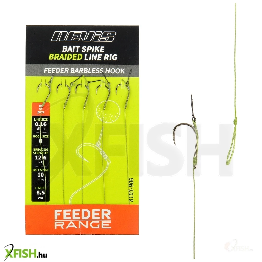 KategóriákKategóriákHorog Előkötött - békéshal Nevis Feeder Előke Csalitüskével Szakáll Nélküli Horoggal 12-es 5db/csomag