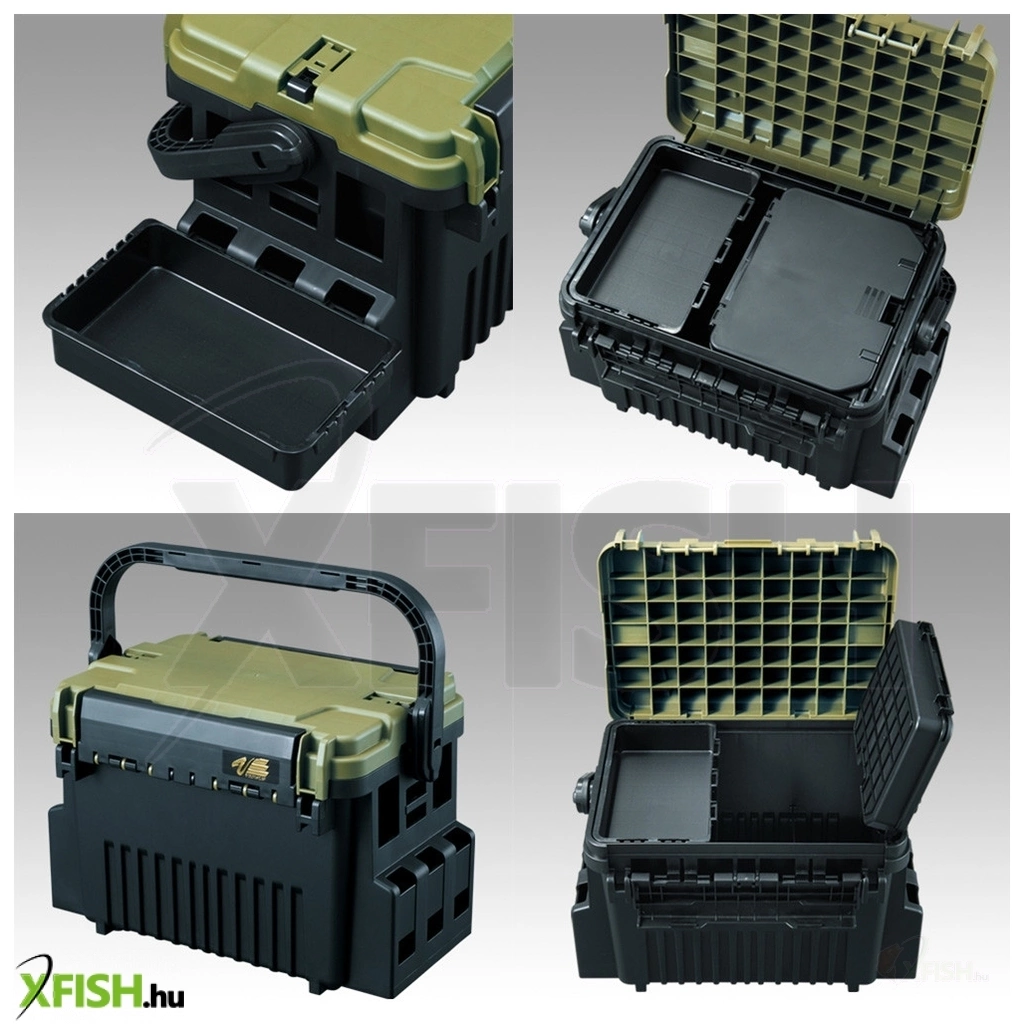 A Meiho Versus VS-7090N egy strapabíró, prémium japán műanyag horgászláda, amely 440×293×293 mm-es méretével és 20 literes űrtartalmával bőséges tárolóhelyet kínál. Súlya 2,55 kg, így jól hordozható. Felső részében zárható rekesz és csúsztatható tálca található, amelyek ideálisak aprócikkek tárolására. Erős kopolimer műanyagból készült, amely ellenáll az időjárásnak és a külső behatásoknak. A biztonságos zárszerkezet megakadályozza a tartalom elmozdulását szállítás közben. A láda több színváltozatban is elérhető, például fekete és zöld kivitelben. Ideális választás a rendszerezett, sokoldalú felszerelést igénylő horgászoknak.