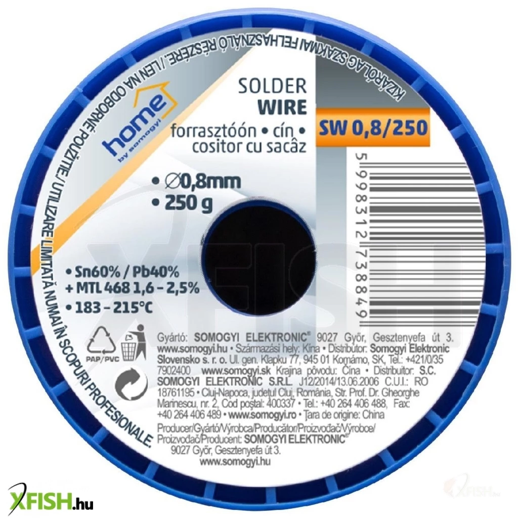 KategóriákKategóriákVillamosság Forrasztás Sma home sw 0,8/250 forrasztóón, 0,8mm, 250g, európai gyártótól származó kiváló minőségű forrasztóón, összetétel sn/pb 60/40%, gyanta 2,0%